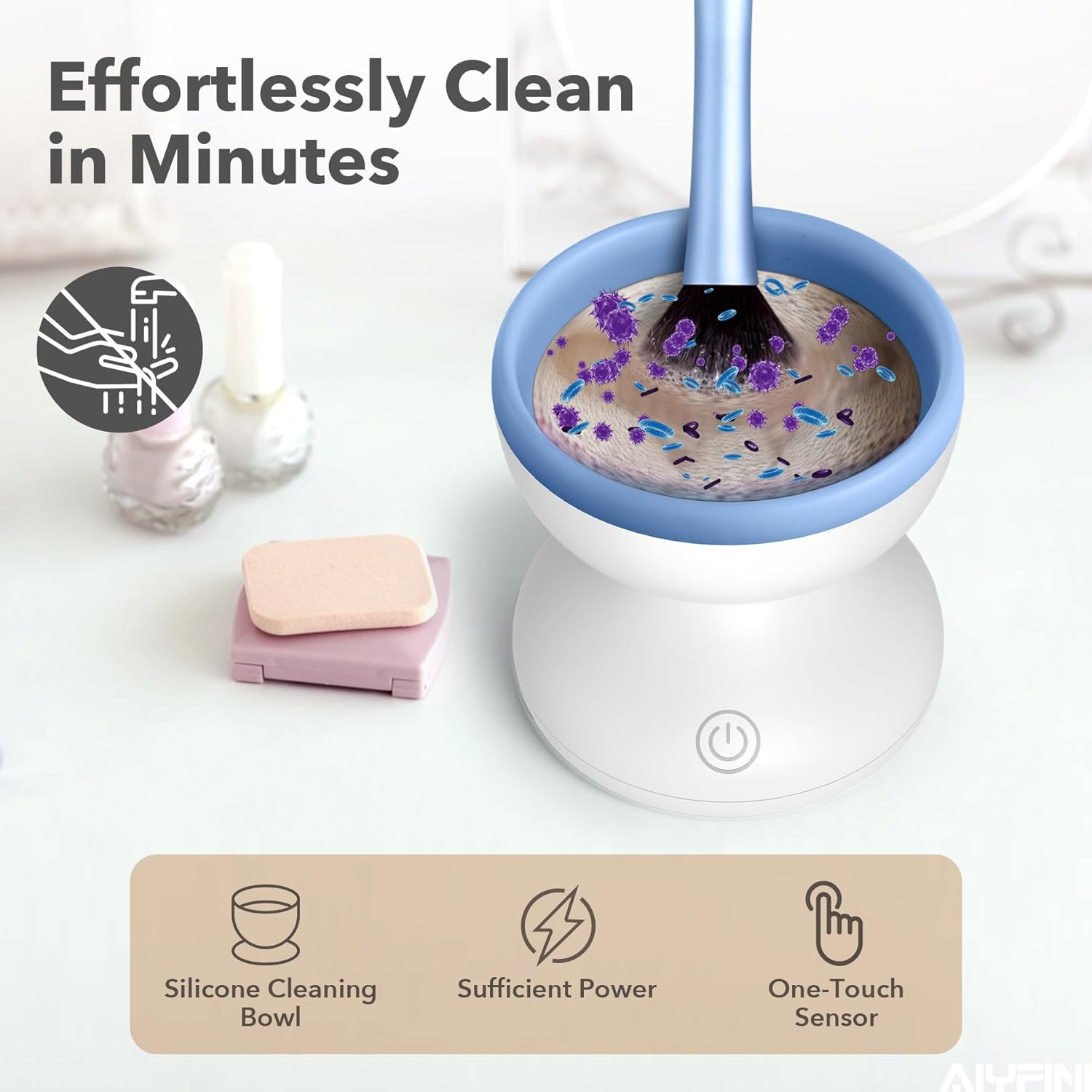 Alyfini Makeup Brush Cleaner Machine - Electric Make up Brushes Cleaner Cleanser Professional Tool for Kabuki Foundation Liquid Powder Face Makeup Self Tanner Brush,Gifts for Women Stocking Stuffers