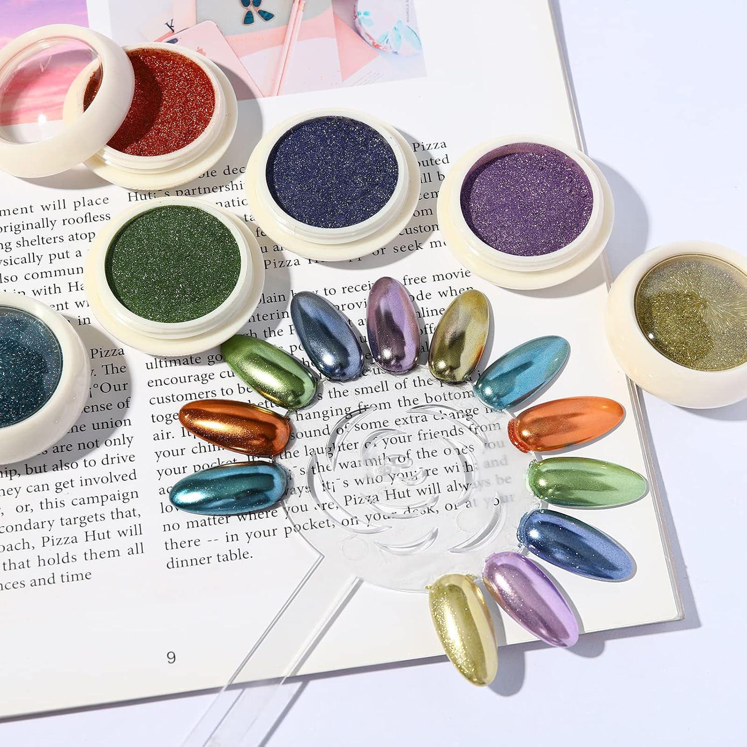 - đź’•Wide Application: The chameleon chrome nail powder is applied on UV gel nails, acrylic nails, natural nails, etc, also a helpful DIY tool for decorating homes, cell phone cases, glasses, body art, etc.