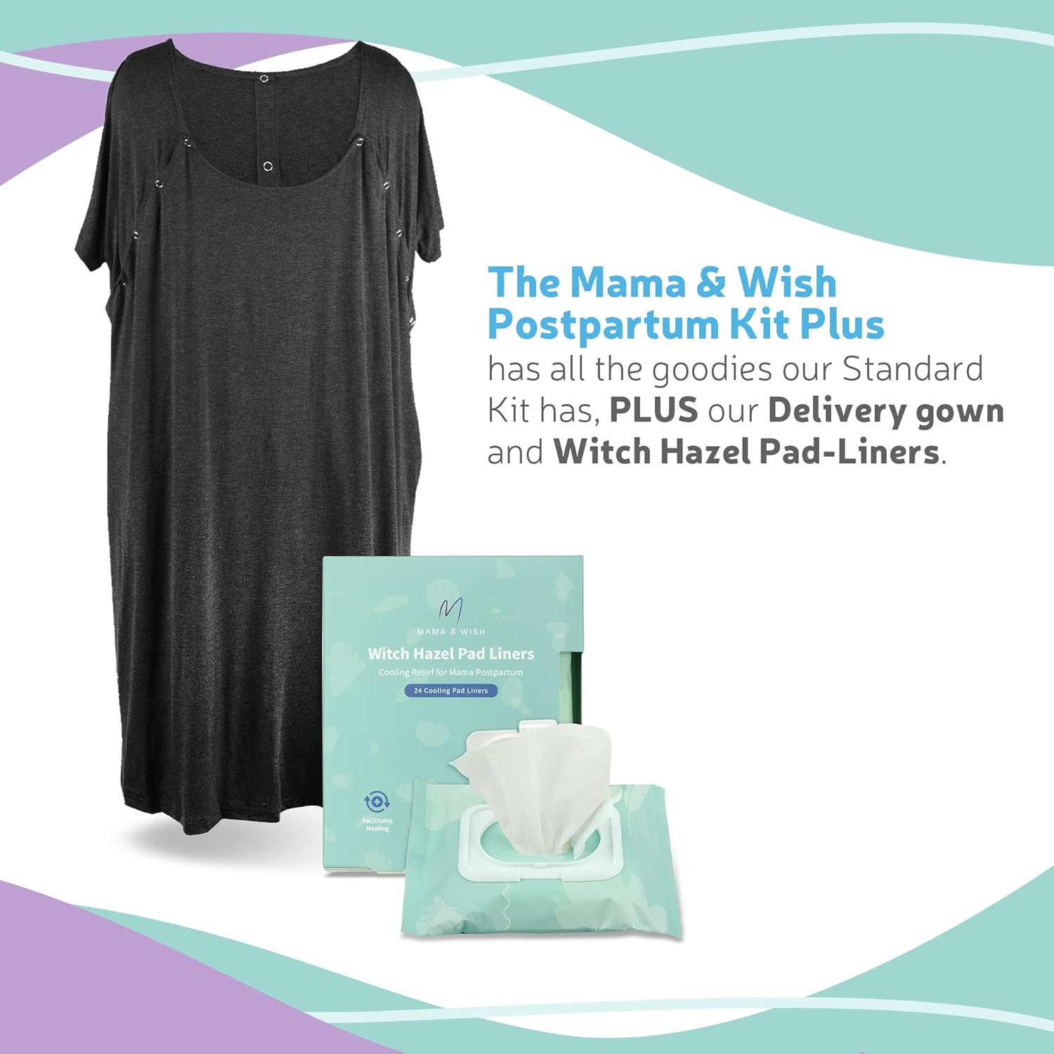 - Postpartum Essential Kit PLUS: Be prepared with all the essentials for the beautiful gift of bringing a new life into the world. At Mama & Wish we created the perfect postpartum kit for labor and delivery, so all you have to remember to do is PUSH!