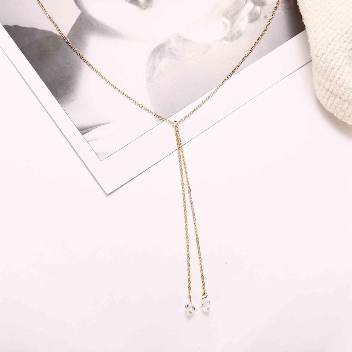 Boho Crystal Drop Necklace Gold Crystal Tassel Y Necklace Chain Vintage Long Drop Chain Necklace Minimalist Necklace Chain Jewelry for Women and Girls Gifts