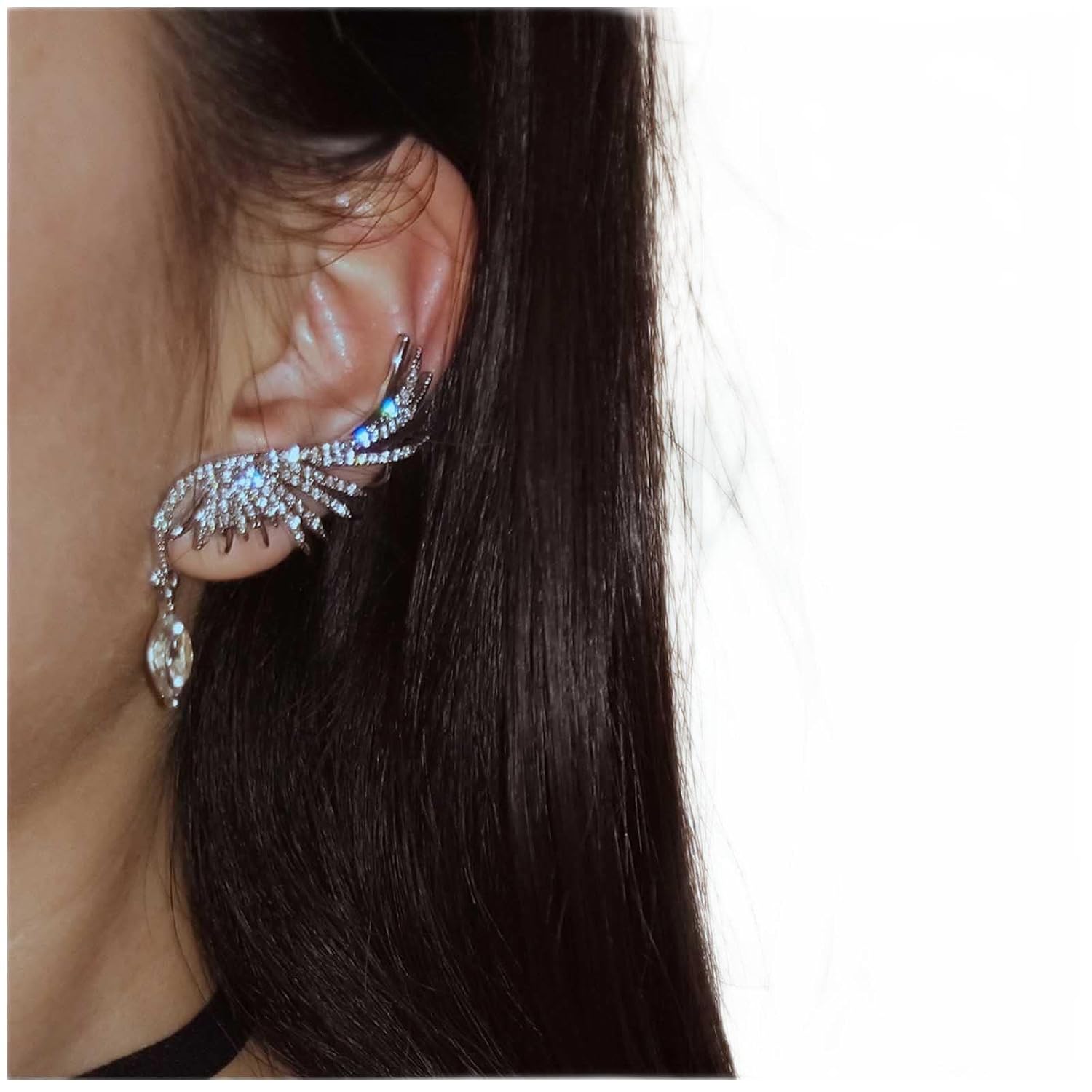 - Cz wing ear crawler earrings made of good quality alloy and crystal,comfortable to wear.