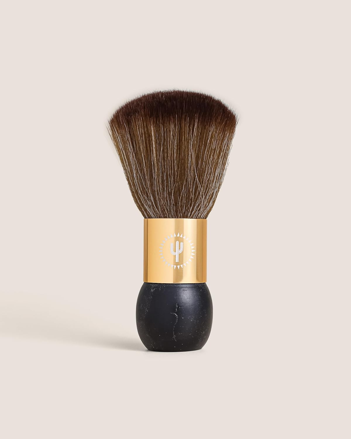 - Professional-Grade Brush: High-quality synthetic bristles with a hard wooden end for durability; perfect for sweeping powder onto the skin.