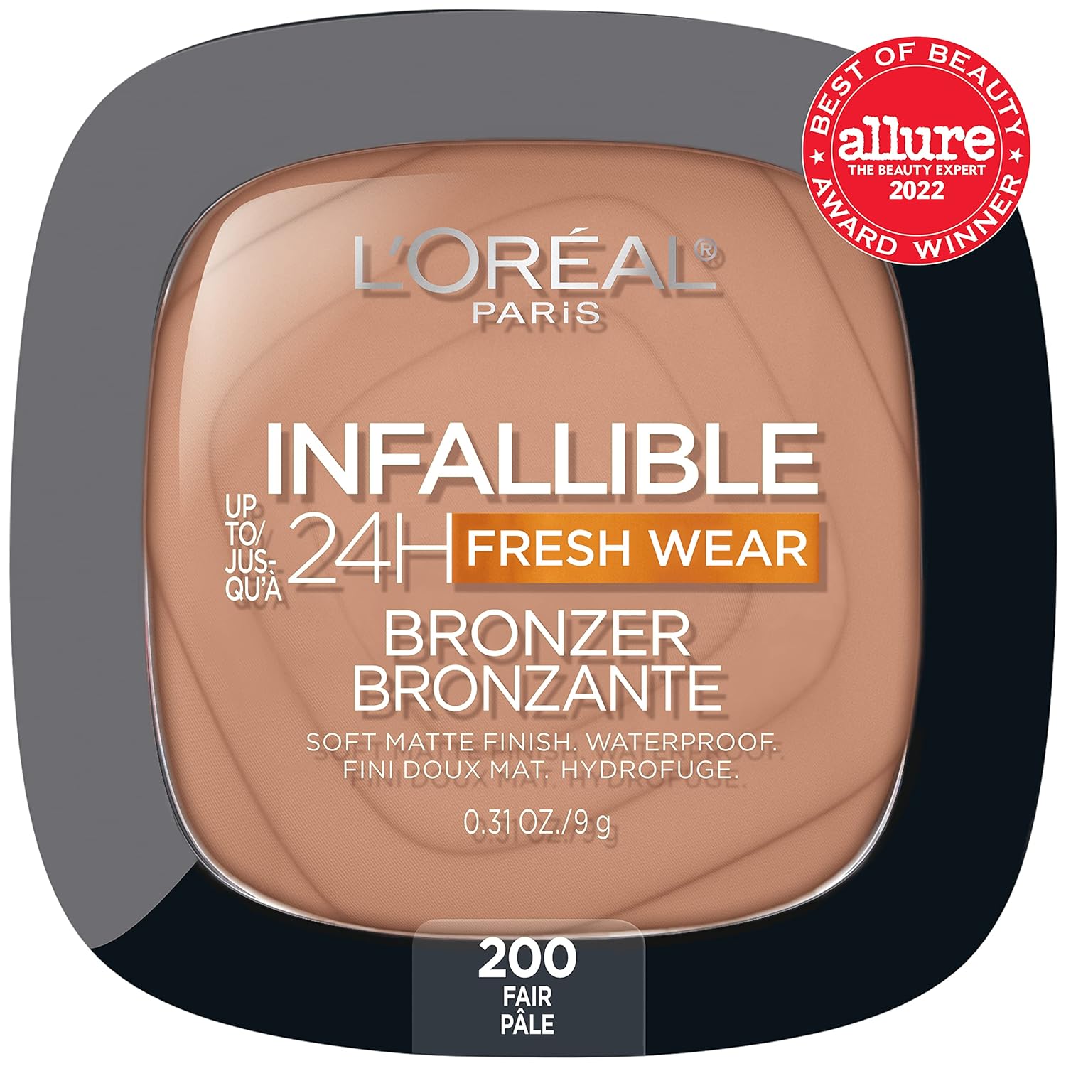 L'Oreal Paris Infallible Up to 24H Fresh Wear Soft Matte Longwear Bronzer. Waterproof, heatproof, transfer, humidity and sweatproof, Fair, 0.31 oz