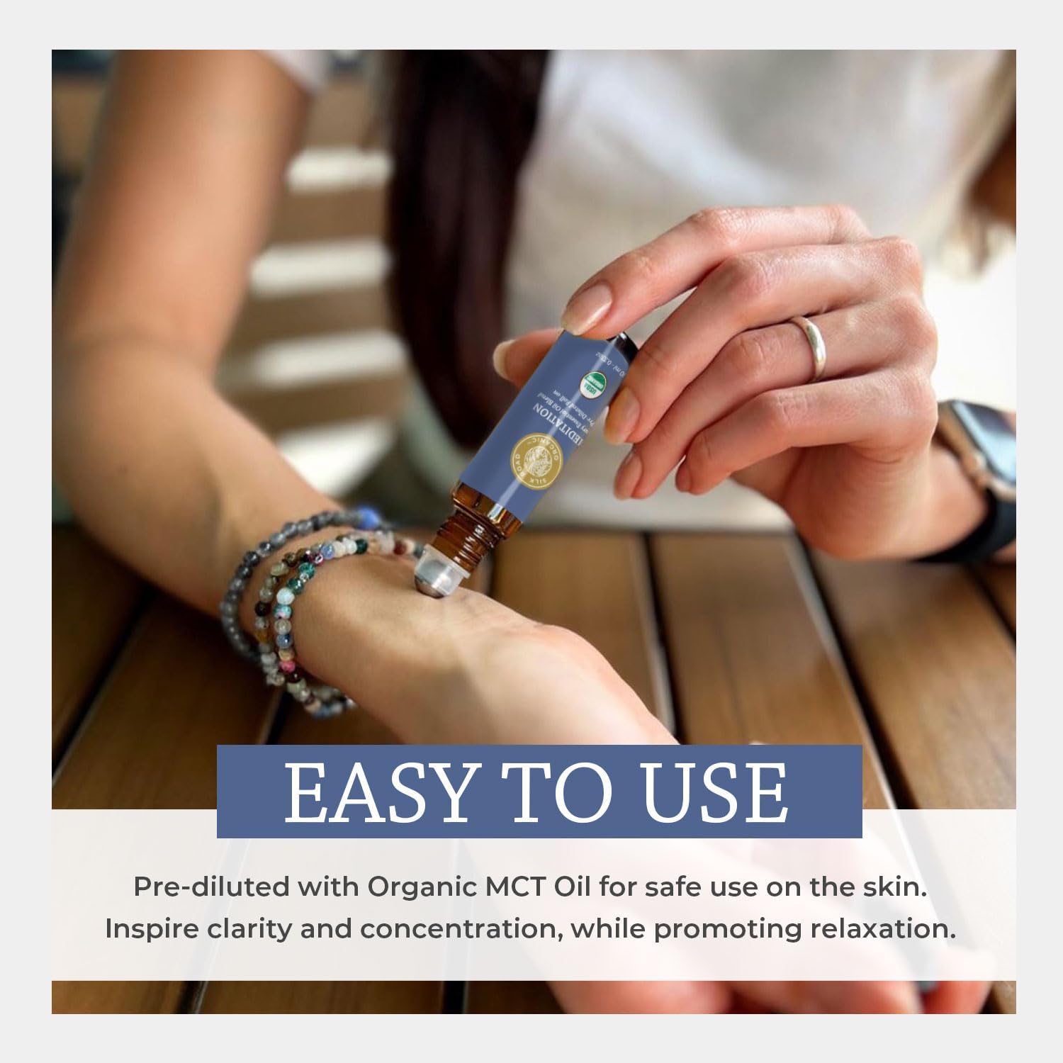 - 100% PURE & NATURAL USDA Certified Organic essential oil roll-on, crafted with a harmonious blend of elevating and opening essential oils traditionally used in meditation practices for chakra healing and mindfulness.