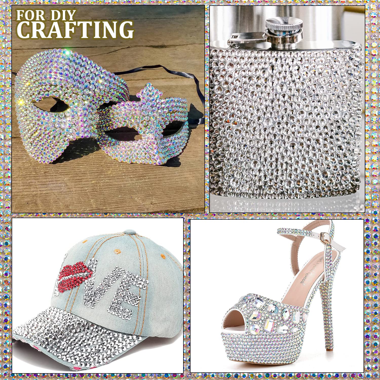 - ❤WIDE APPLICATION --The Nail Rhinestones Are Perfect for Creating 3D Nail Art or Decorating Jewelry, Makeup, Body Art, DIY Crafts, Wedding Dress or Shoes, Cell Phone Cases, Glasses, Greeting Cards, Bags, Guitars, Scrapbooks etc.