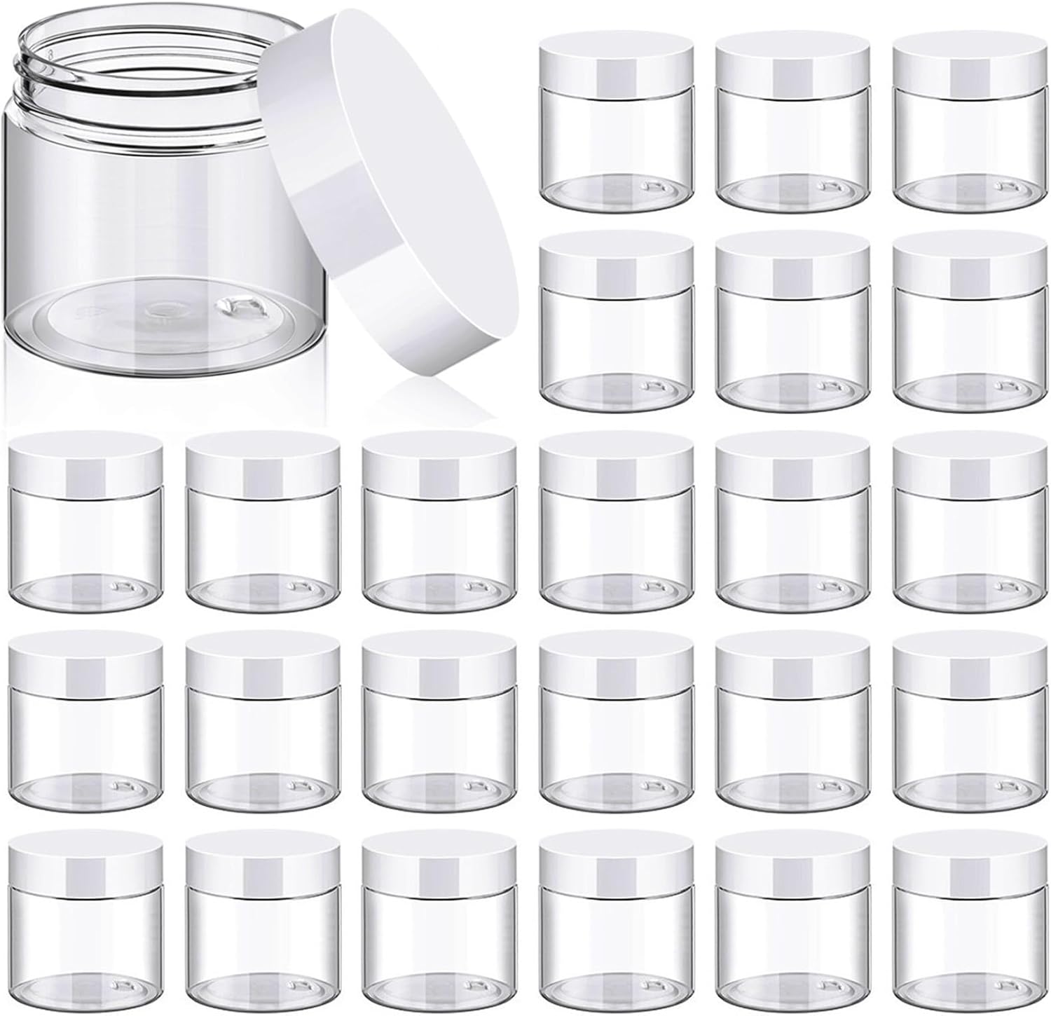 - Super Value Pack: You will get 24 clear plastic jars with white lids and 24 customized labels