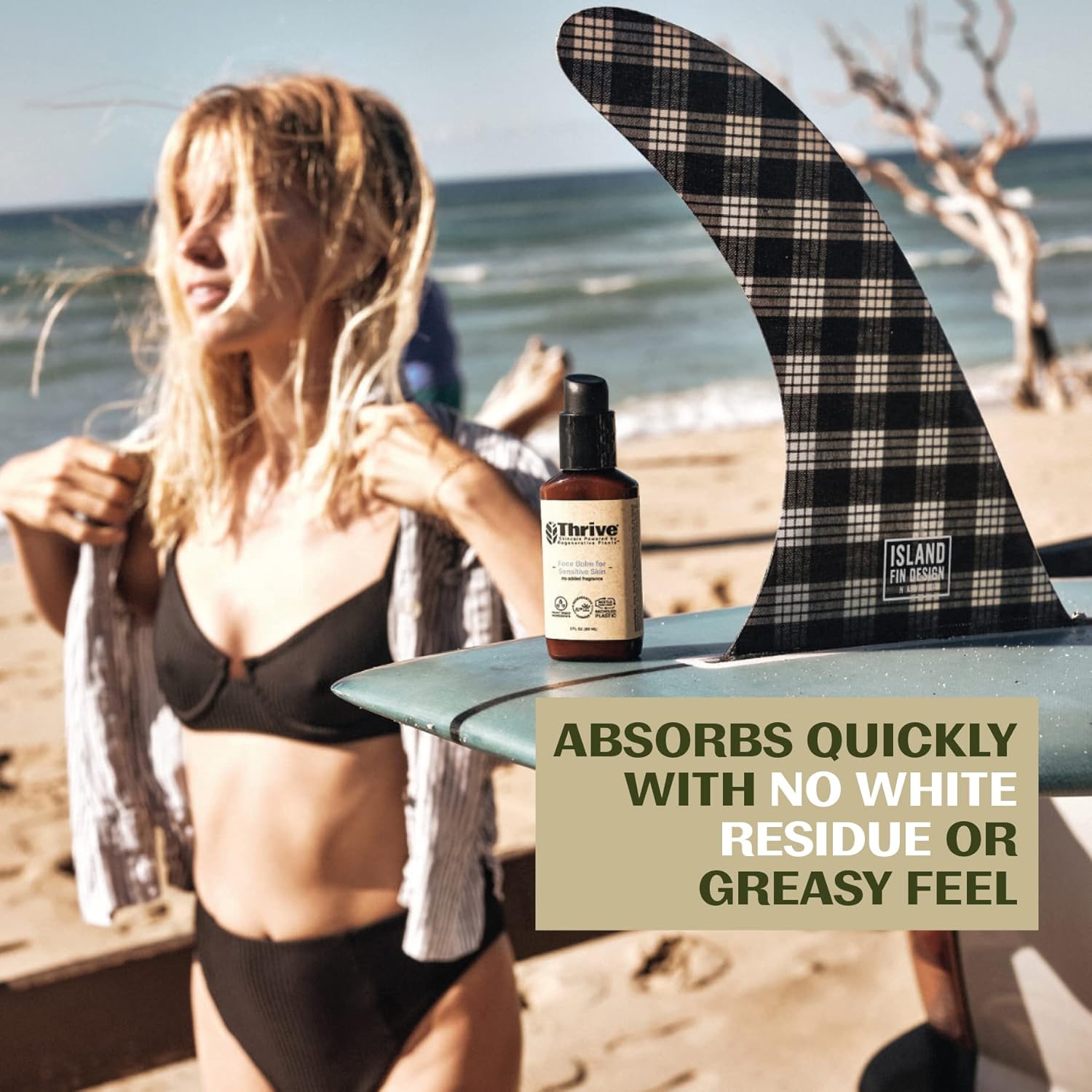 - HIGH QUALITY & SATISFACTION GUARANTEED โ Sensitive skin sunscreen with no chemical sunscreen filters, benzene free, cruelty-free, vegan, PABA-free, GMO-free, paraben-free, no synthetic colors or unhealthy ingredients. We want you to absolutely love your Thrive and offer a 100% satisfaction policy. If you donโt love your Thrive, let us know and we will completely refund your purchase.