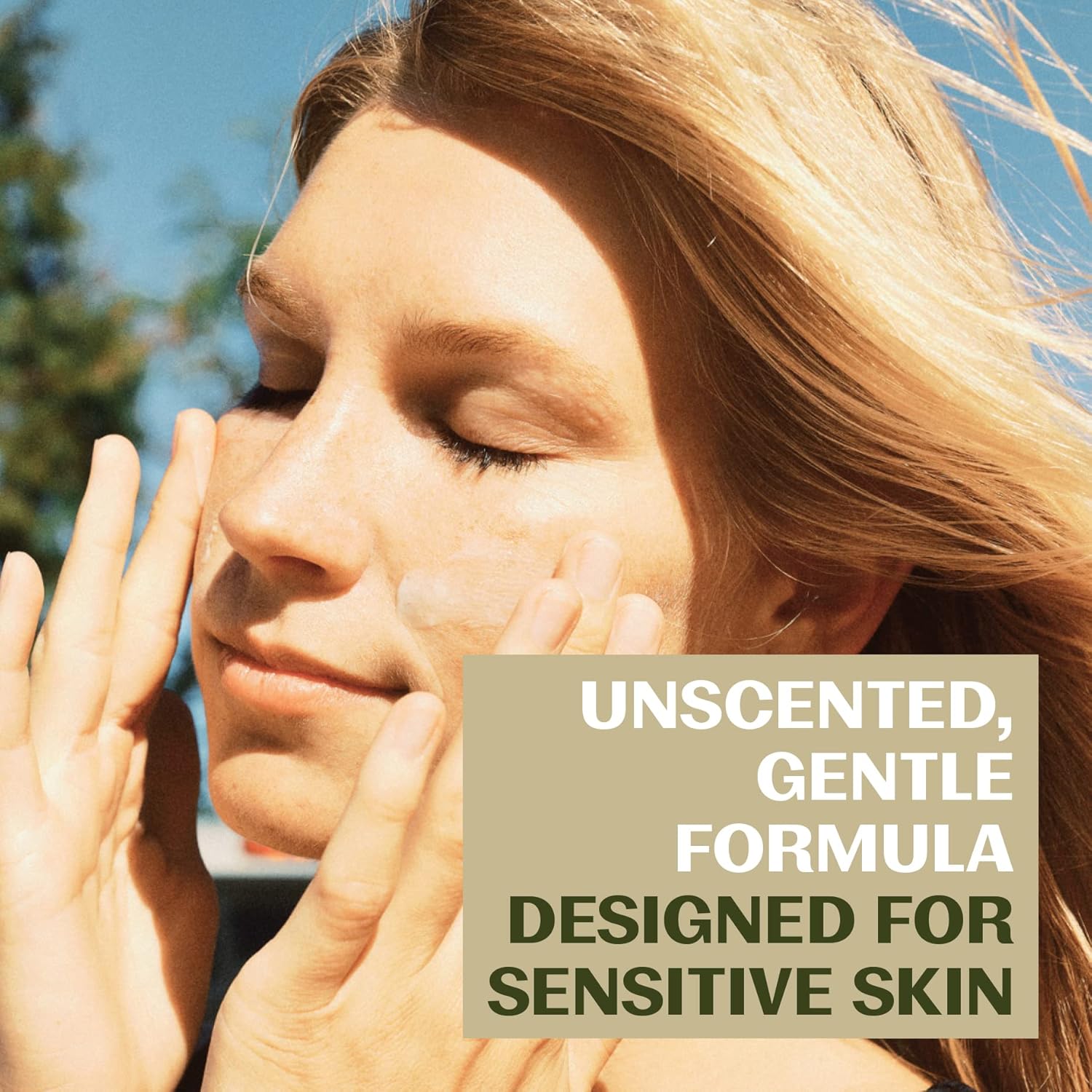 - DAILY MINERAL FACE SUNSCREEN DESIGNED FOR SENSITIVE SKIN โ All the benefits of our original SPF 30 in a more gentle, moisturizing, unscented formula. Non-nano Zinc Oxide shields your skin from harmful UVA/UVB rays while the dual moisturizer hydrates, revitalizes, and protects sensitive skin. Our lightweight facial sunscreen absorbs quickly with no white residue or greasy feel.