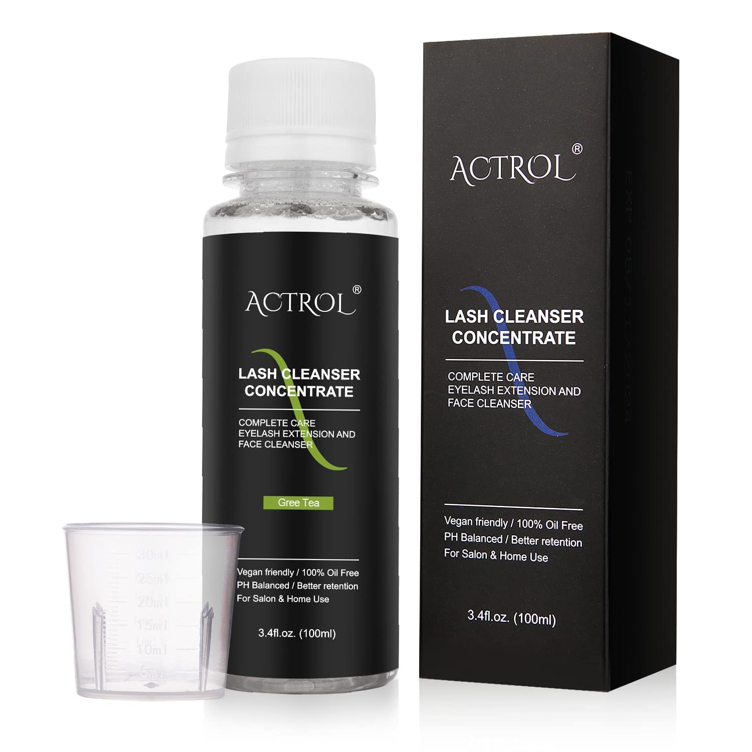 Eyelash Cleanser Concentrate 100ml Green Tea Professional Lash Shampoo Foaming Cleanser Paraben & Sulfate Free Non-lrritating Wash for Extensions Lashes with Salon Home Care-Makes 20 Bottles