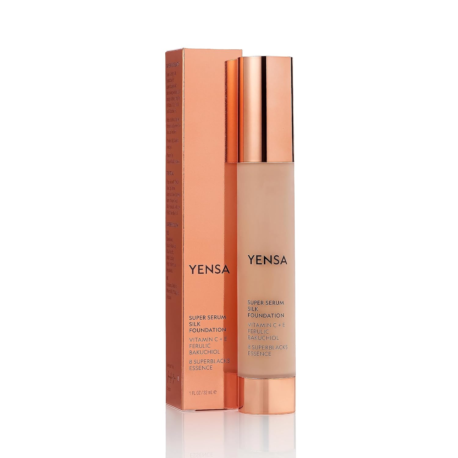 YENSA Super Silk Foundation - Full Coverage, Age-defying complex of Vitamin C, E, Ferulic, and Bakuchiol Oil (Tan 2) 1.0 fl oz