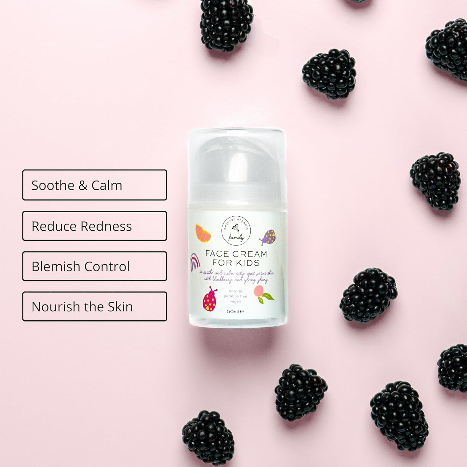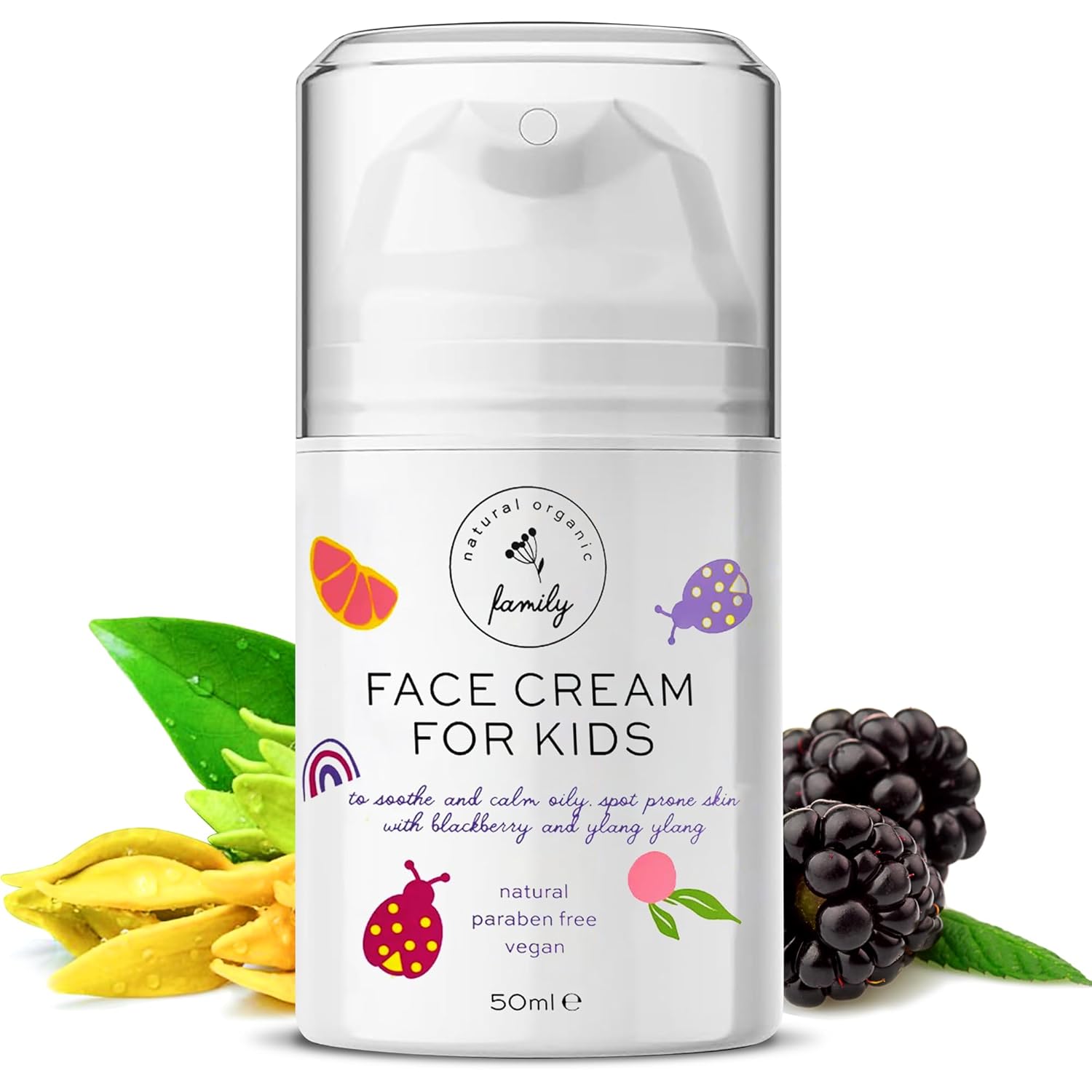 Gentle Face Cream Moisturizer for Kids and Preteens – Nourishing and Calming for All Skin Types – Natural Ingredients: Hyaluronic Acid and Vitamin E - Made in UK 50ml