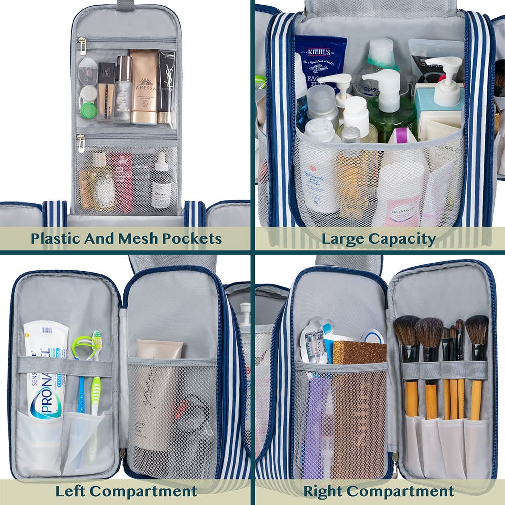 PAVILIA Extra Large Toiletry Bag Travel Bag for Women Men, Hanging Cosmetic Organizer, Water Resistant Makeup Bag for Accessories Toiletries, Travel Essentials Kit (Stripe Navy)