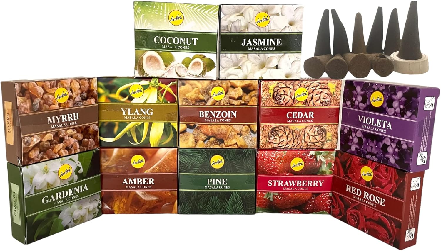 Sreevani Natural Masala Incense Cones and Holder Bundle, 120 Cones Total, Assorted #2