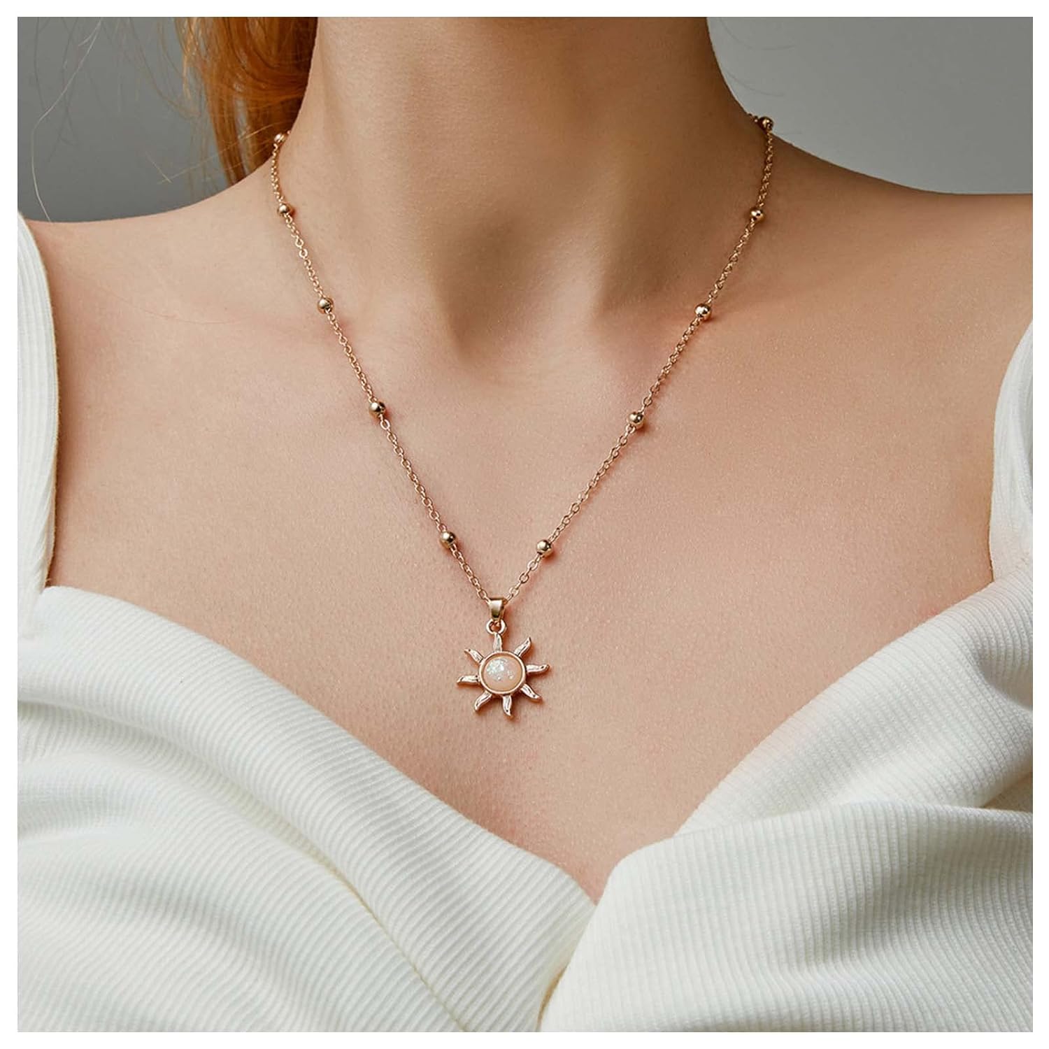 - Crystal sun necklace chain made of high quality alloy and natural stone,make the surface of the necklace brighter,hypoallergenic,wonβt irritate your skin.