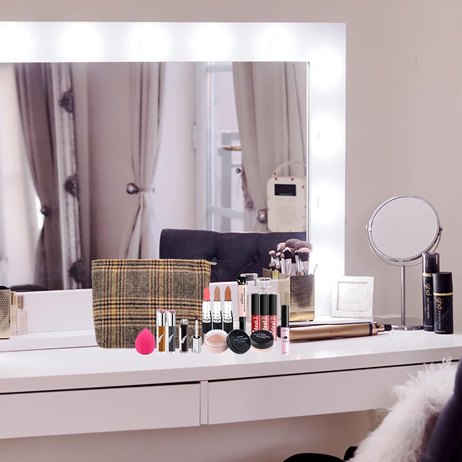 - Large Capacity:Large enough to fit all of your makeup,yet small enough to take it on-the-go.Dimensions(Overall):10inchesX7inches.