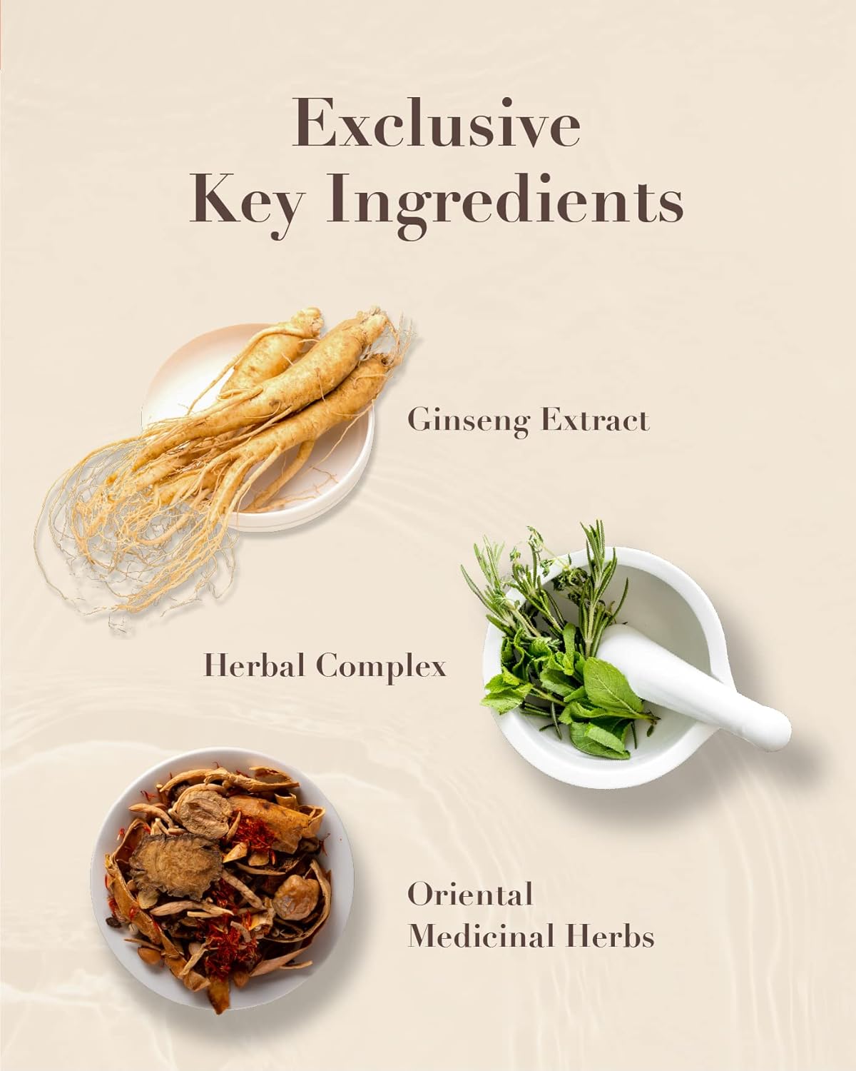 - GINSENG INFUSION HERBAL CARE - Sooryehan’s exclusive herbal water-drip technology where the whole ginseng plant (roots, stems, leaves) undergoes a 100-hour long extraction process to ensure all actives are potent and retains its full potential.