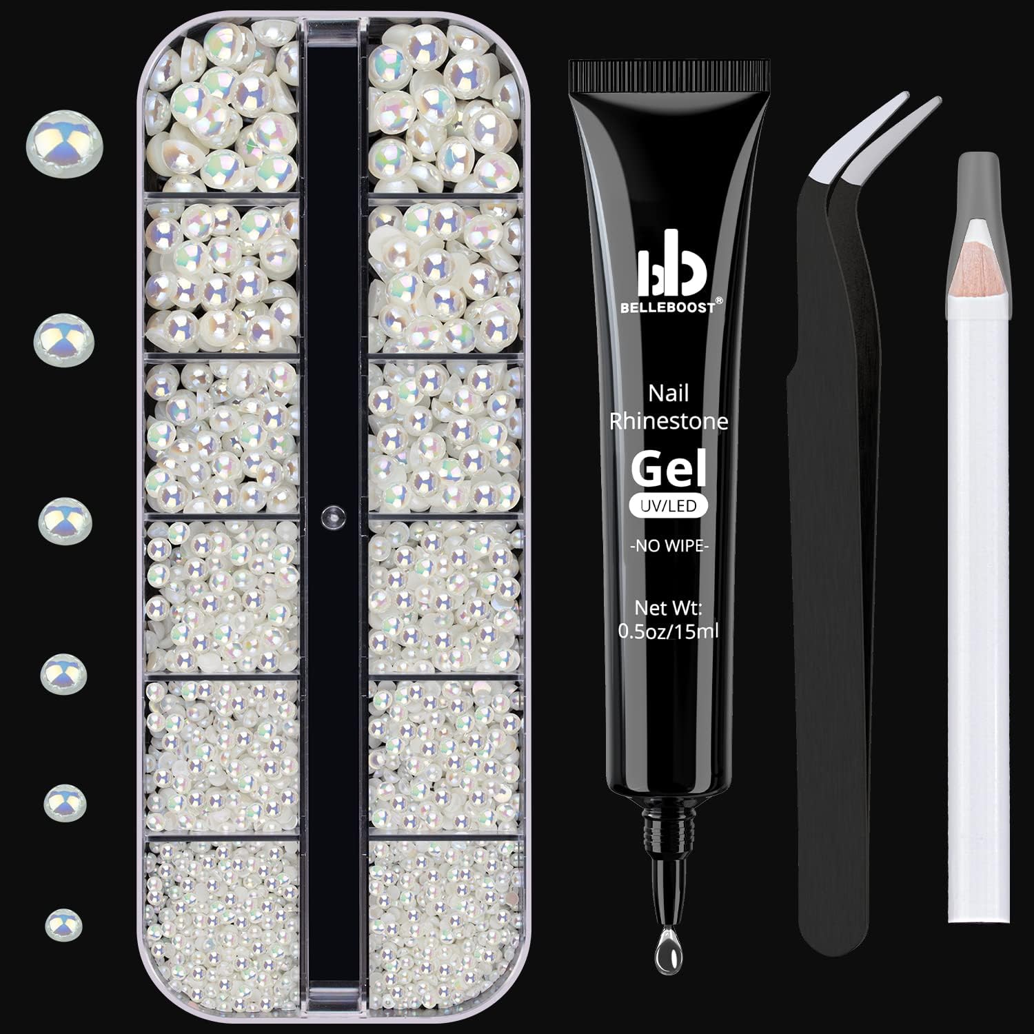 - 💎WHAT YOU WILL RECEIVE: This package contains 1 pc of 15ml tube design NO WIPE rhinestone gel glue; 1 box of flat back beige AB half round pearls; 1 pc of picker pencil and 1 pc of tweezer. This set helps you decorate your nails more conveniently.