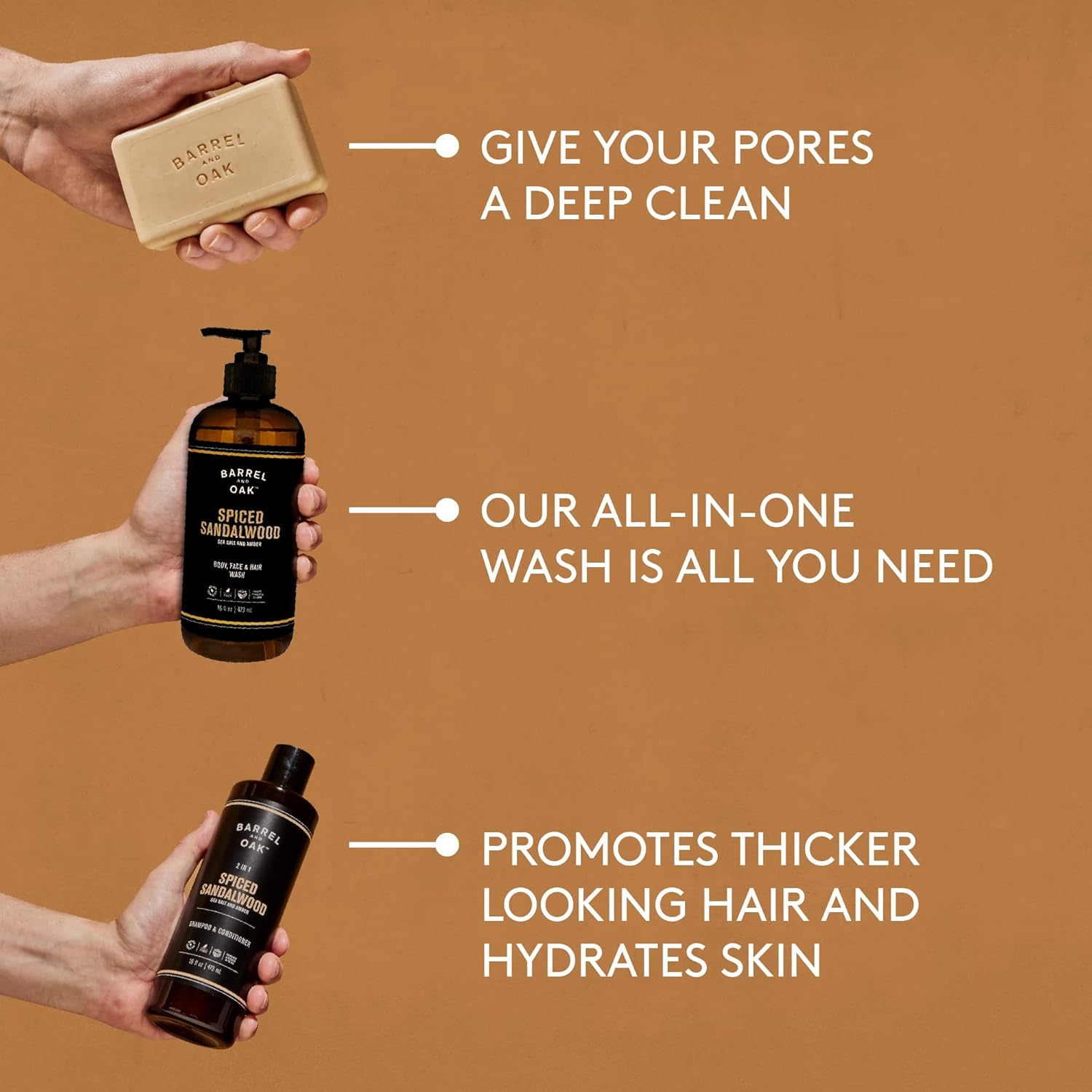 Barrel and Oak - Spiced Sandalwood Body Care Set, Fragrant Sea Salt & Amber Scent, Rich in Essential Oils, Hydrating Formulas, Rich Texture, No Parabens or Phthalates, Certified Organic (3-Pack Set)