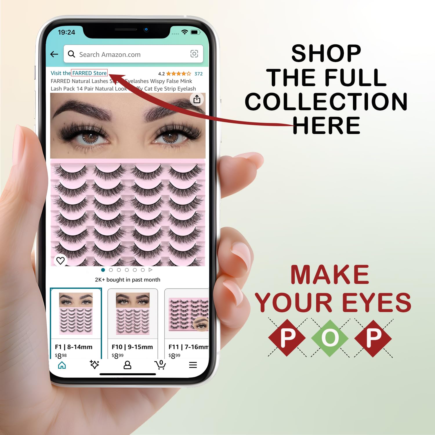 FARRED Natural Lashes Short Eyelashes Wispy False Mink Lash Pack 14 Pair Natural Look Fluffy Doll Eyelash Small Fake Strip Lashes Full Pestañas Sets for MUA and Beginners Daily Makeup (F5 | 8-15mm)