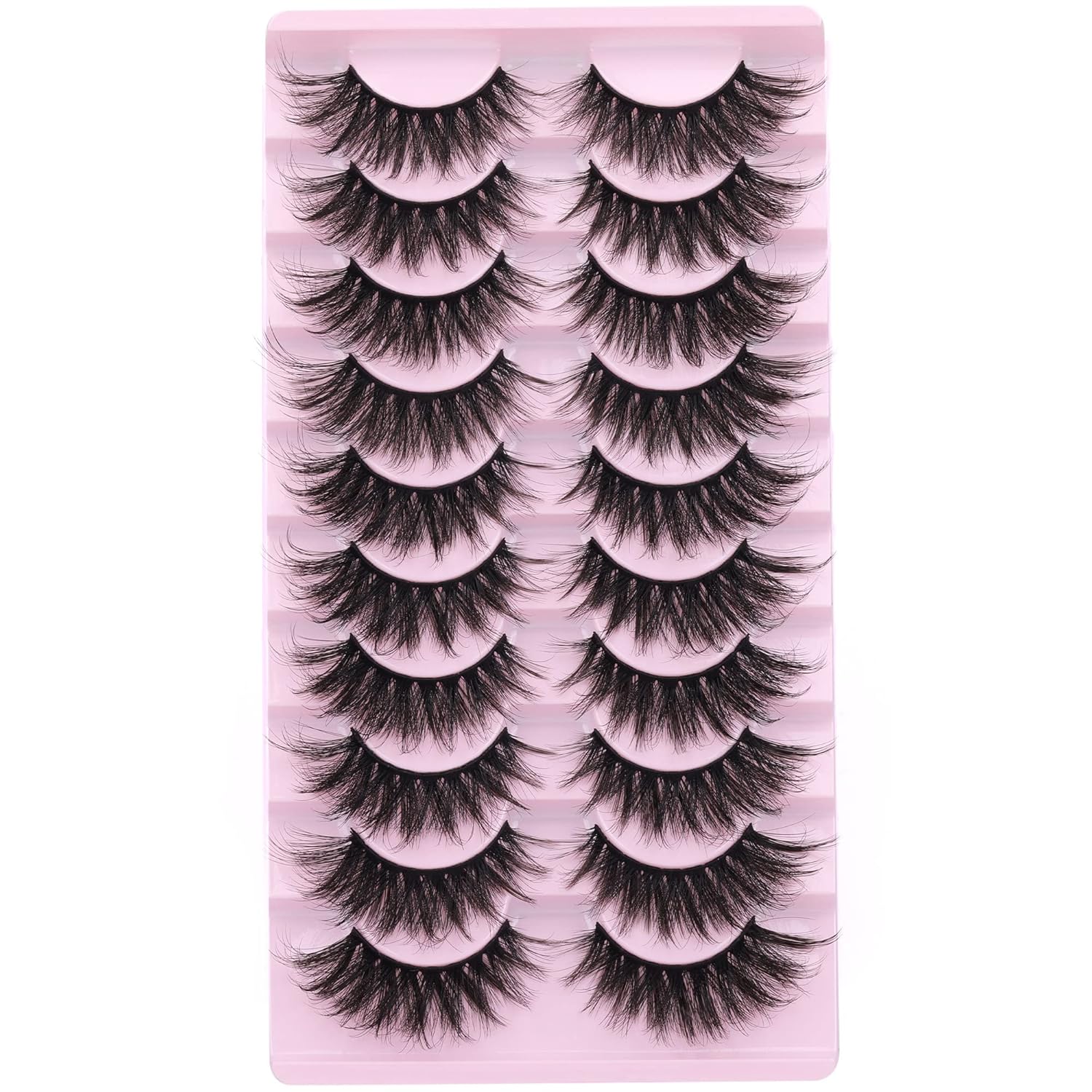 FANXITON False Eyelashes Fluffy Mink Lashes 20 mm Cat Eye Lashes Long 5D Wispy Dramatic 10 Pairs Pack
