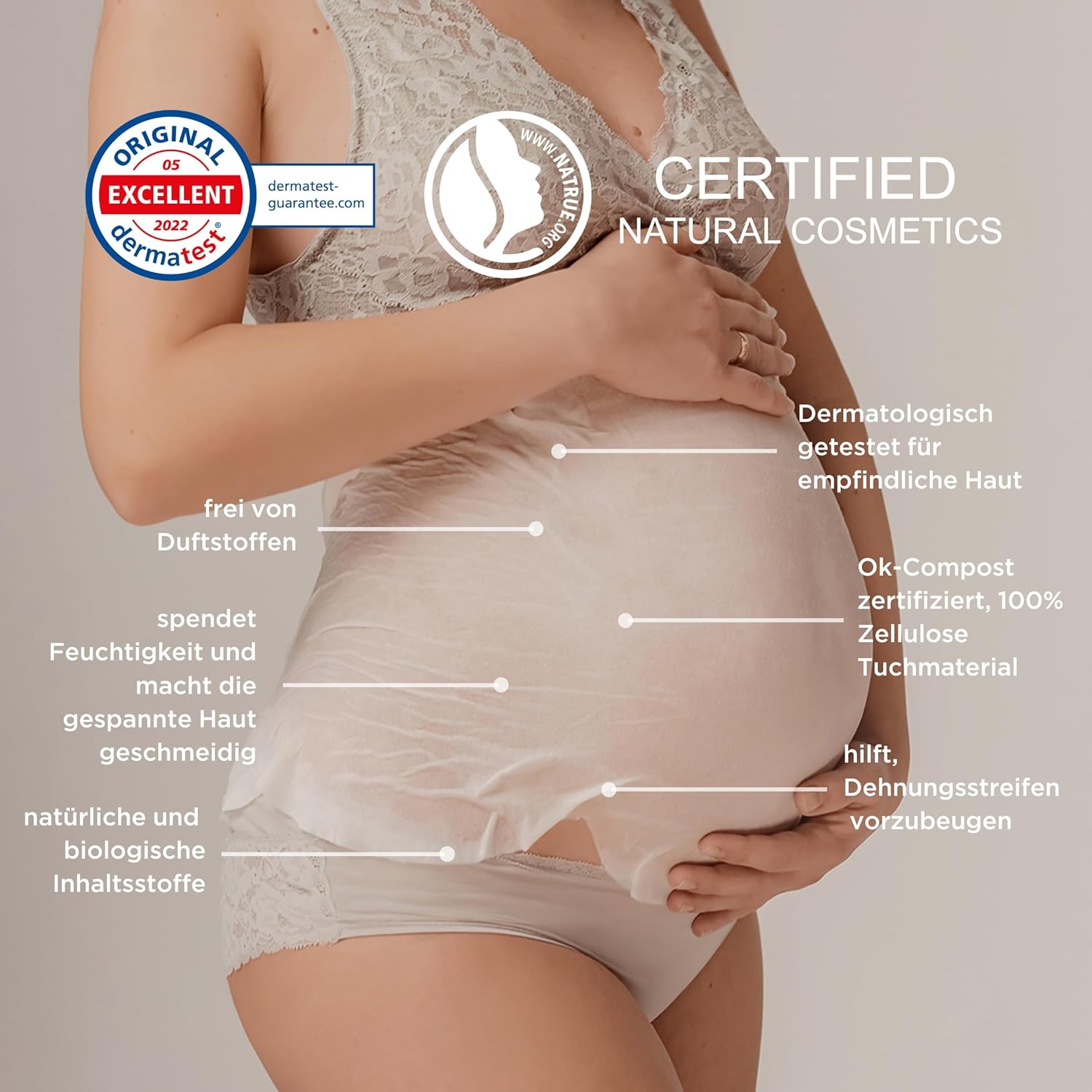 3 x Feuchtigkeitsspendende Bauchtuchmaske - hilft gegen Dehnungsstreifen - wirkungsvolle Mischung aus natürlichen und biologischen Pflanzenstoffen