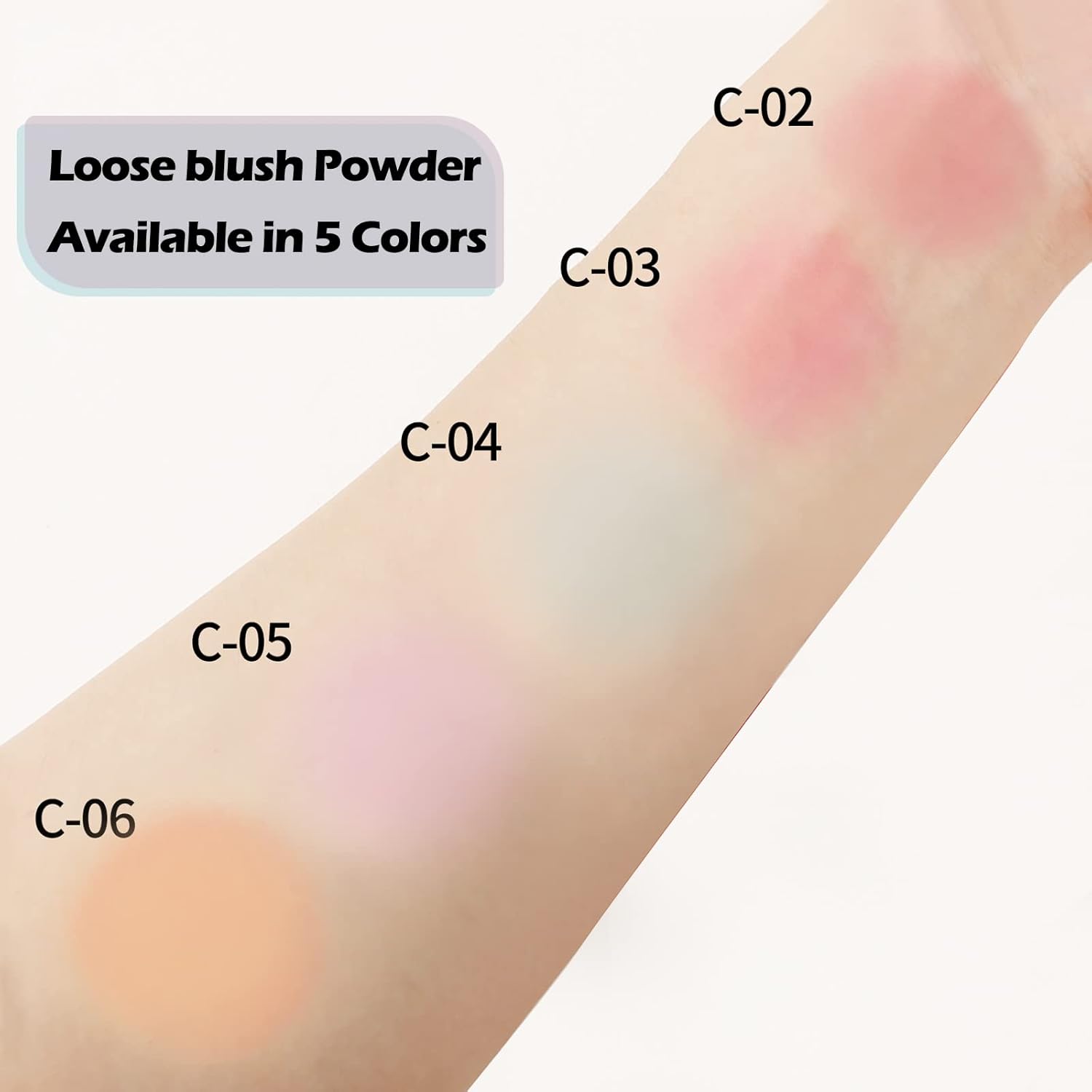 - Available in 5 Shades: The smooth, soft loose blush powder will suit any skin tone, from warm to neutral to cool for color in an instant. Powder puff included (only shade #02 with shimmer)