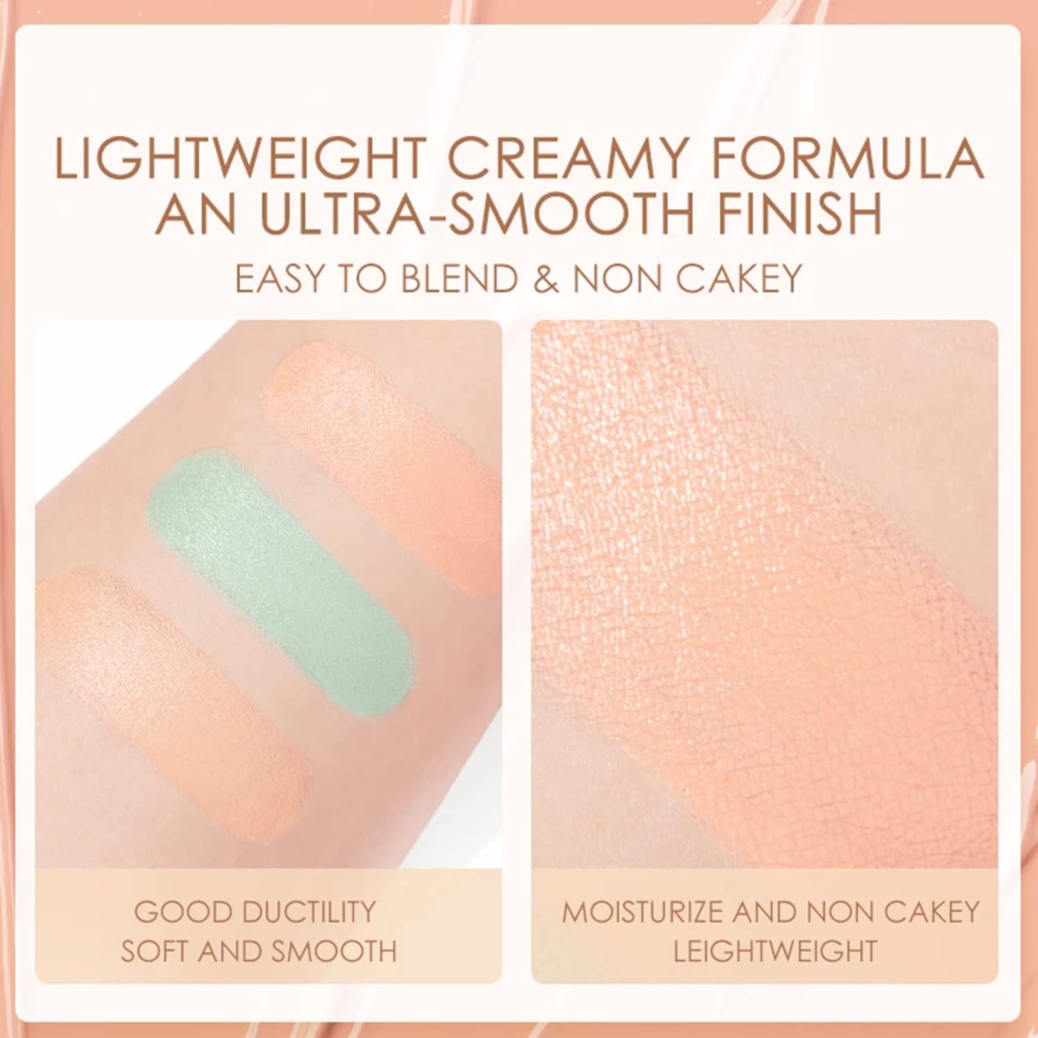 - Cream Contouring Makeup: Highlight or lowlight based on your facial features and needs. The Cream Concealer Palette works well to correct uneven skin tones.The green neutralizes redness,the orange/pink corrects dark circles veins, and purple-ish bruises.No creasing,NO greasy,No sticky