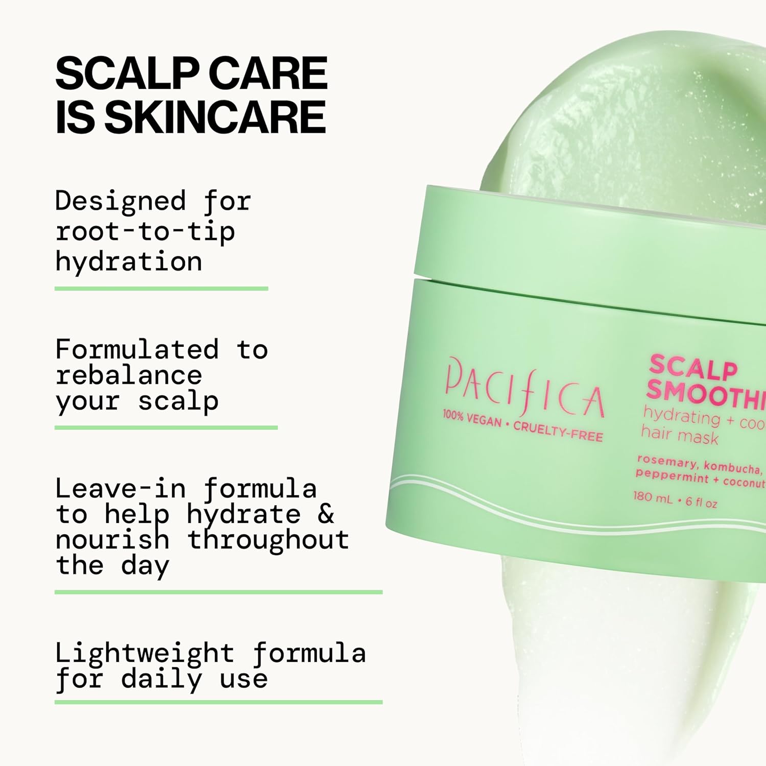 Pacifica Scalp Smoothie Hydrating Scalp Treatment & Leave-On Hair Mask, Cooling Relief for Dry, Flaky, Itchy Scalp & Thinning Hair, Vegan & Cruelty-Free, 6 fl oz
