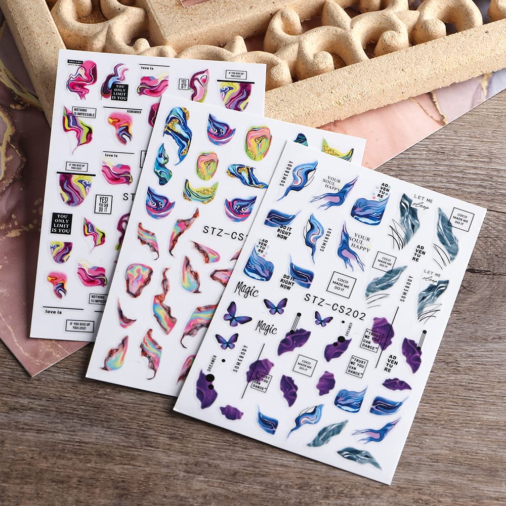 - 6 Sheet Marble Nail Decals--You will get 6 sheets colorful marble nail stickers approximately 9.5x6.3cm/3.74x2.48inch, compact size and light weight make them easy to carry, contain 3 styles and 2 sheet for each style.