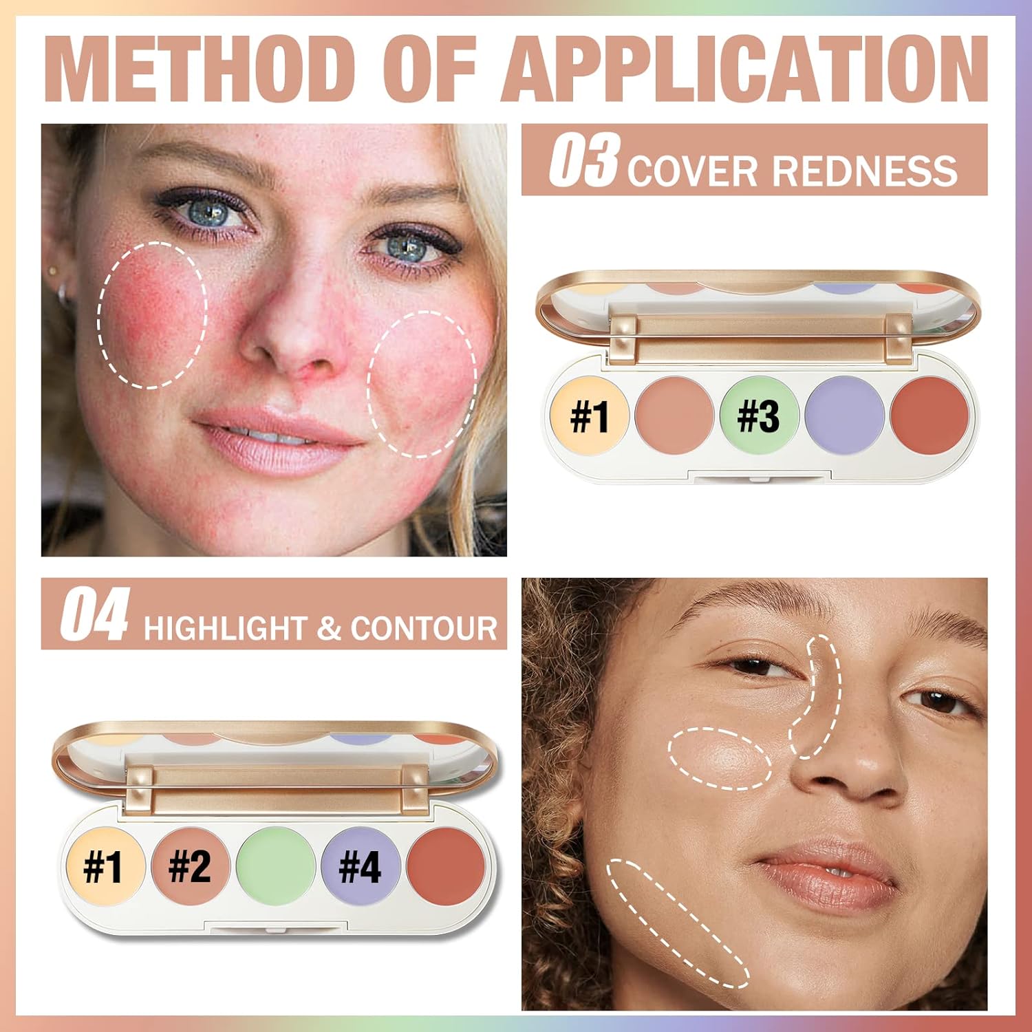 - MULTI-FUNCTION: Layer, blend, and define your facial features with these 5 creamy shades. The light colors balance the skin tone, and the medium shades are perfect for under-eye areas and blemishes. You can also mix them together to build a 3D makeup effect.