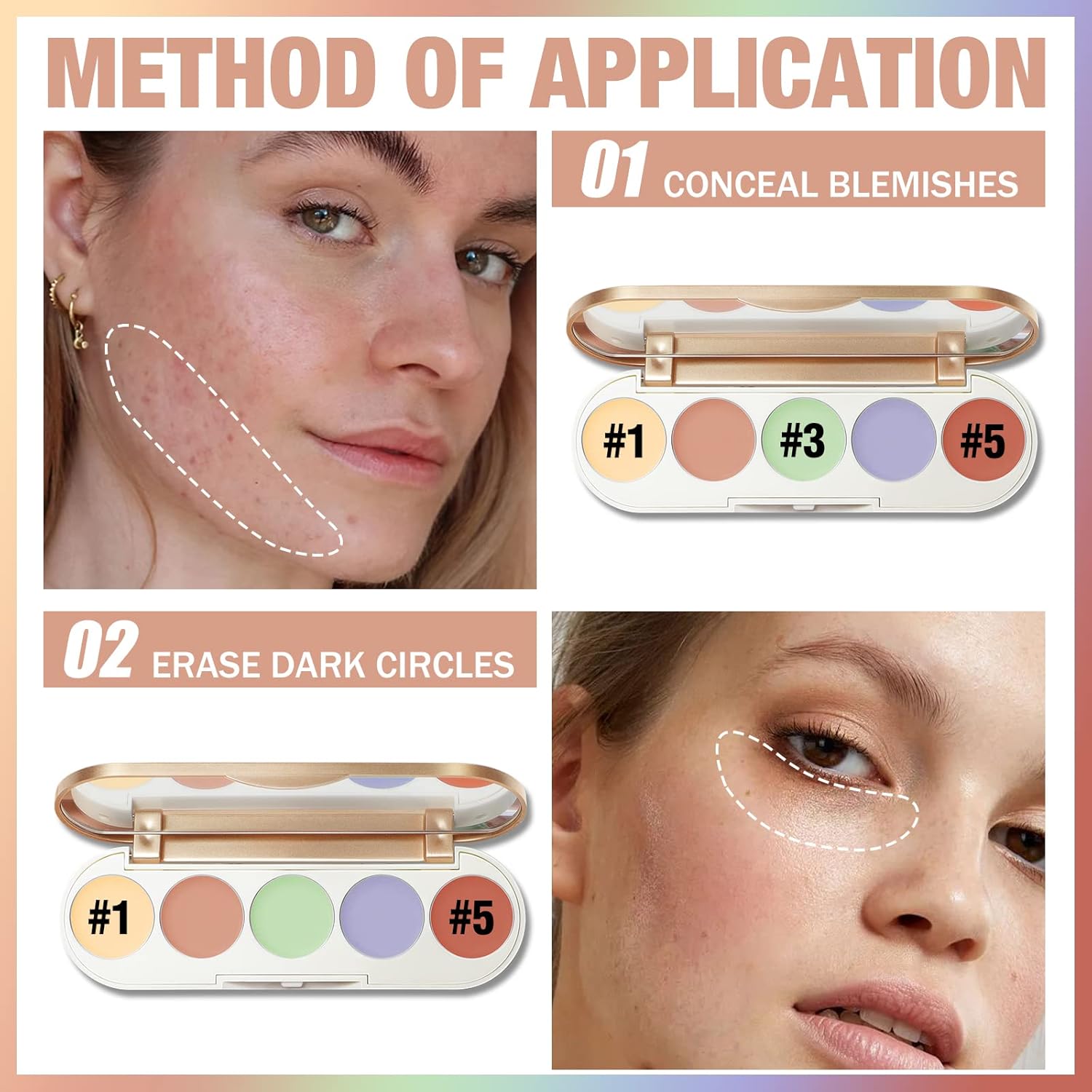 - PRO COLOR CORRECTING PALETTES: FOCALLURE #GoldenAge Multi Uses Concealer Palette includes 5 blendable creamy shades, which perfectly work together to conceal problem areas, like dark circles, redness, and discoloration.