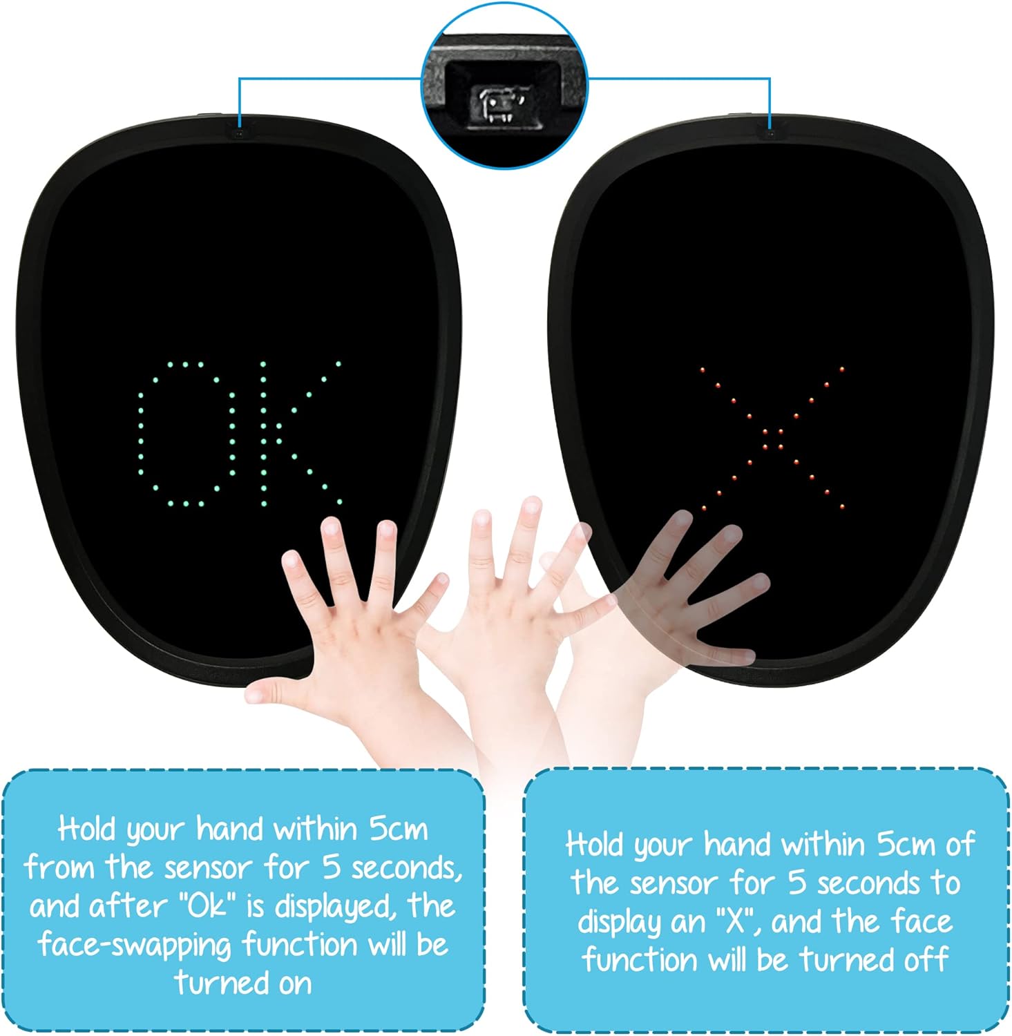 Depointer Life Led Mask with Gesture Sensing,Unisex LED Lighted Face Transforming Mask for Costume Cosplay Party Masquerade
