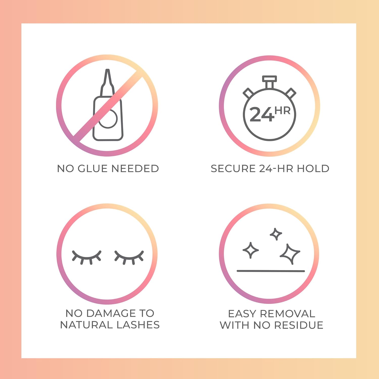 - 100% Flawless & Fuss Free: Mistake-proof & no glue needed, our Press On Falsies Lash Extension Kit gives you lashes in a flash that go under your natural lashes so the bands are invisible while still giving you volume and glam