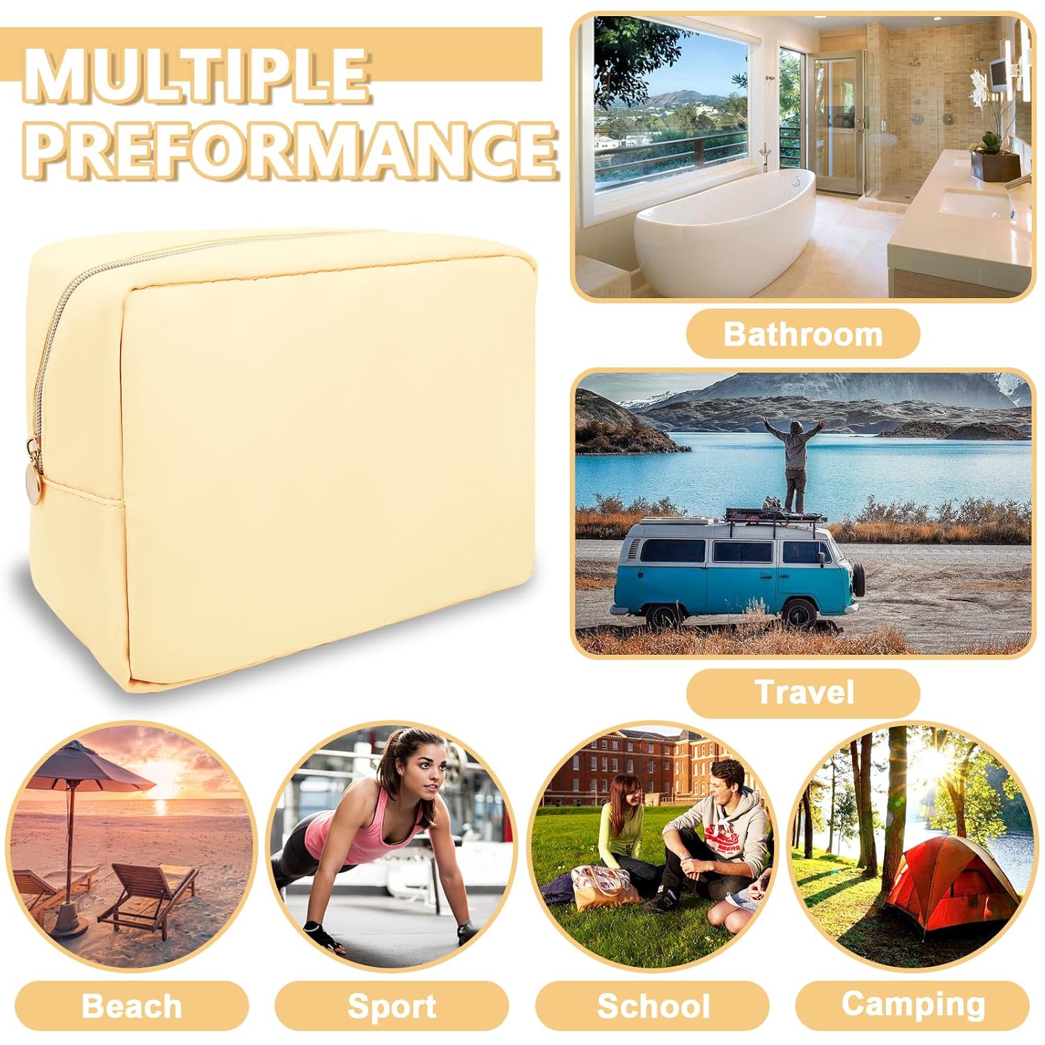 - 【Multi-purpose】The preppy makeup bag makes it easy to pack and carry cosmetics, jewelry, sanitary napkins, brushes, small electronic accessories, toiletries, medications, tools or other travel essentials. It's a great bag for travel, parties, camping, beach, gym, etc.