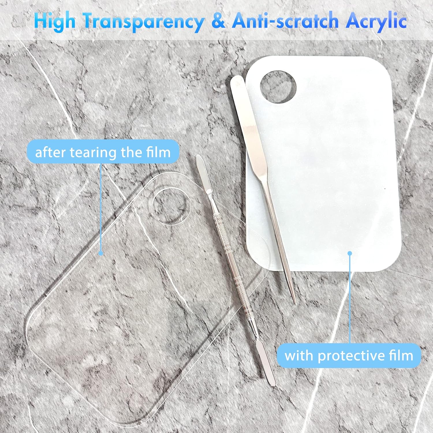 - No Sharp Edge Makeup Mixing Tray: 100% brand new premium acrylic glass palette is highly transparent and convenient to check the color after mixing also can do its best to avoid injury as no sharp edges like metal.