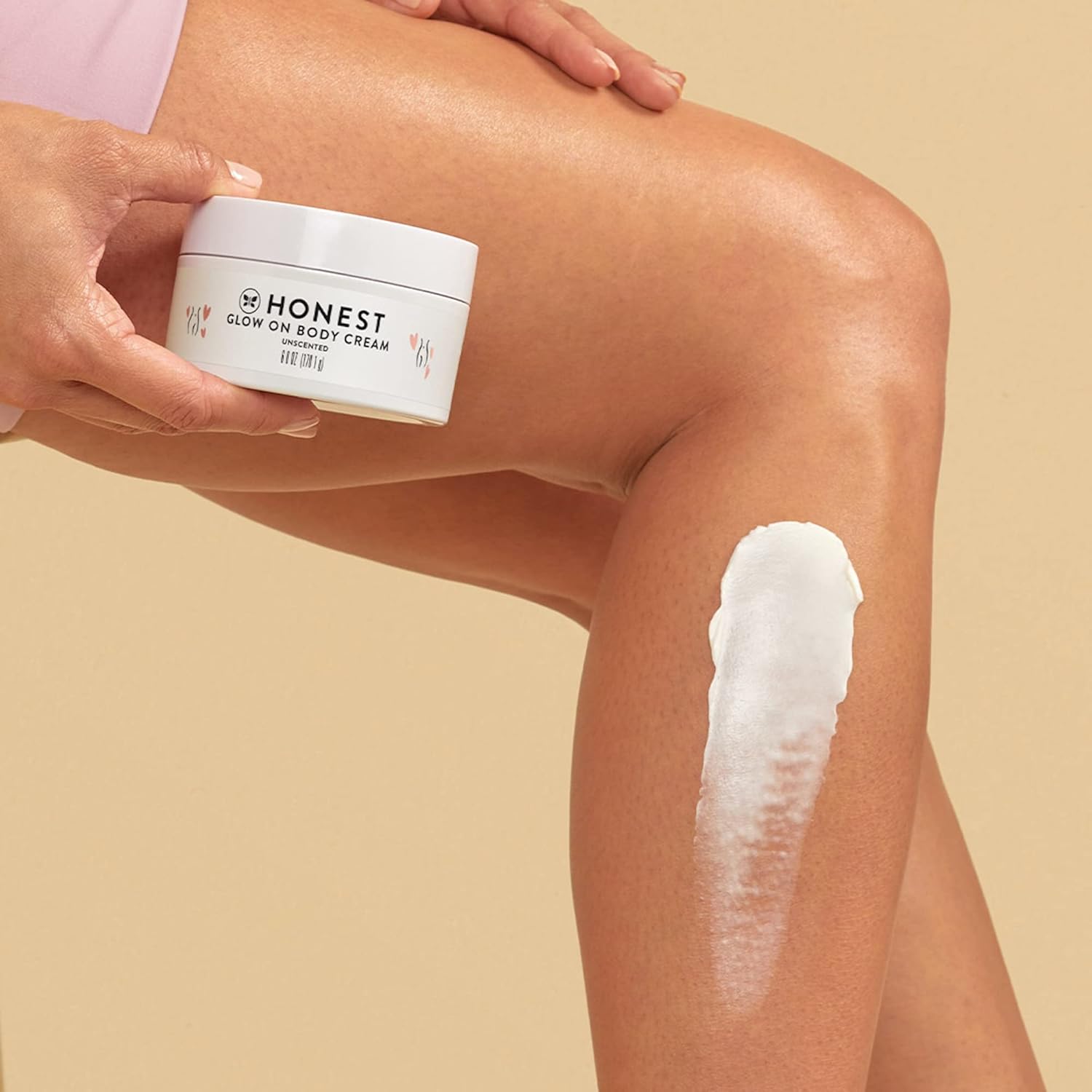 - Glow on Body Cream is enriched with avocado oil and firms, tightens, and helps smooth skin, supporting natural contours from belly to booty during and after pregnancy