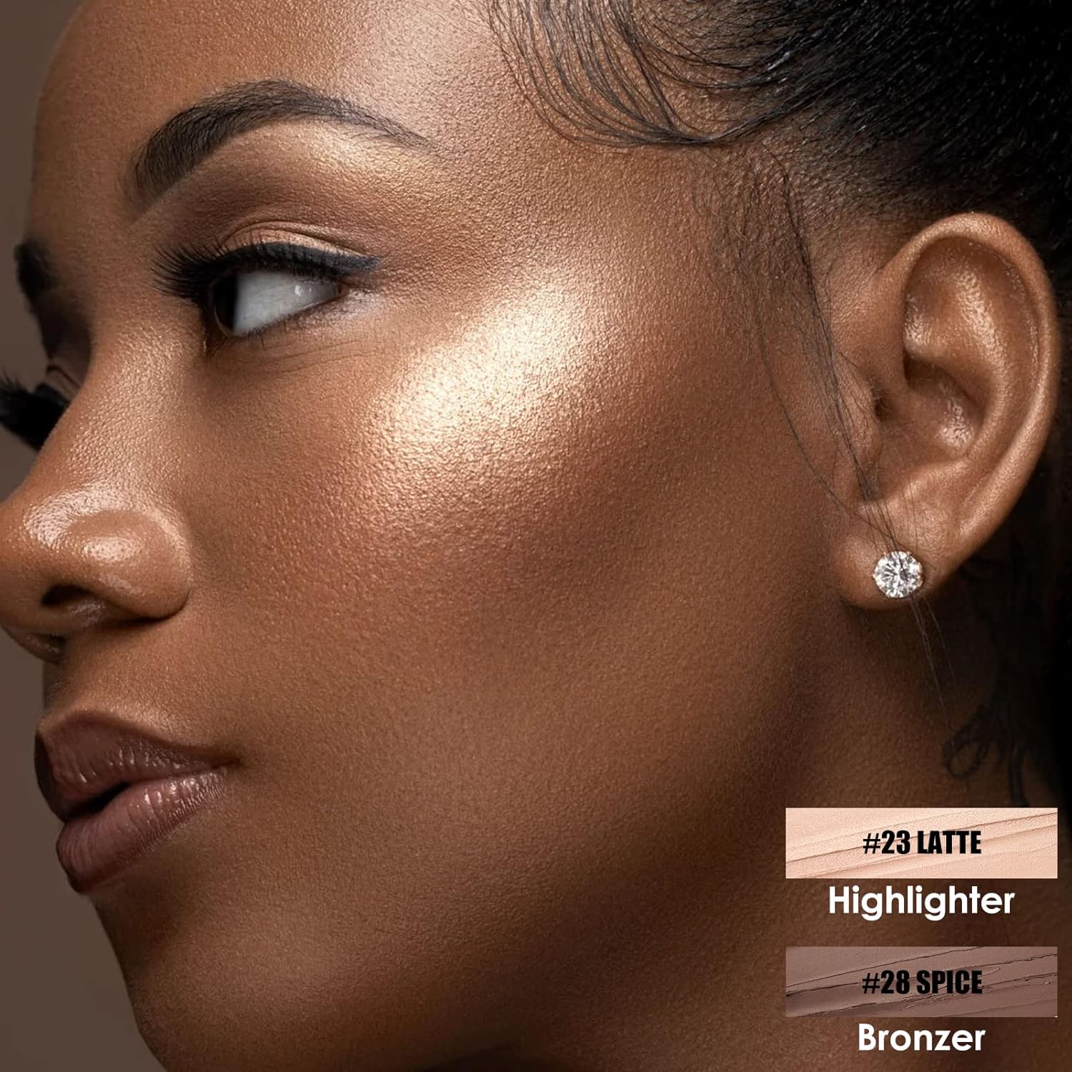 - Create 3D Makeup Effect:This contour stick set has a radiant bronzer and a shimmering highlighter to give skin a warm, natural glow. It melts beautifully into skin, never feeling sticky or greasy, and gives skin a revived and youthful look.