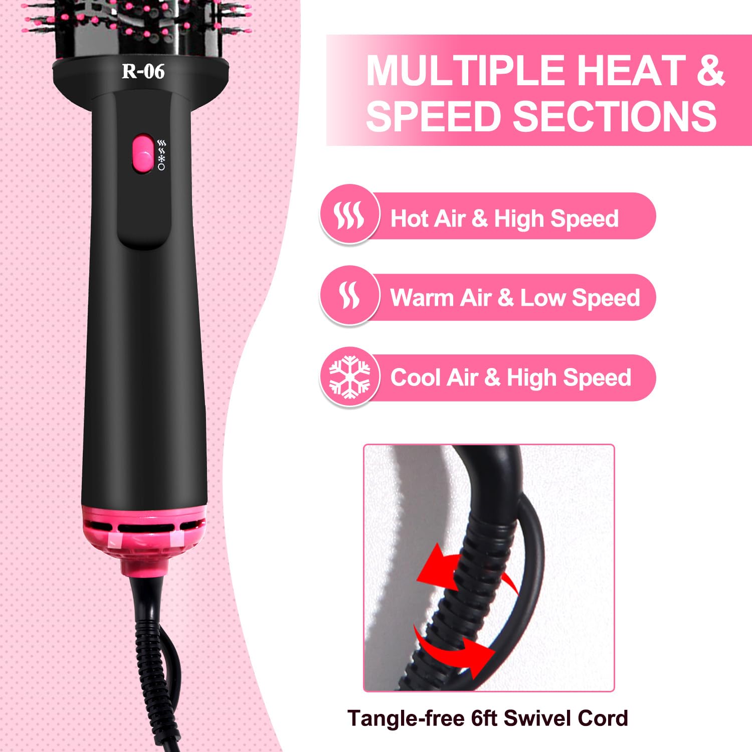 - 【4 IN 1 Drying & Smoothing & Volumizing & styling Hair】: The unique oval brush design smoothens the hair. Made with nylon pins and tufted bristles, it provides detangling, enhanced volume and better control.Different from traditional hair dryers, this volumizer can be positioned closer to the scalp to achieve maximum lift. With 360° surrounding wind and a 50% larger drying area, it allows you to save at least half the time needed for drying and styling your hair!!