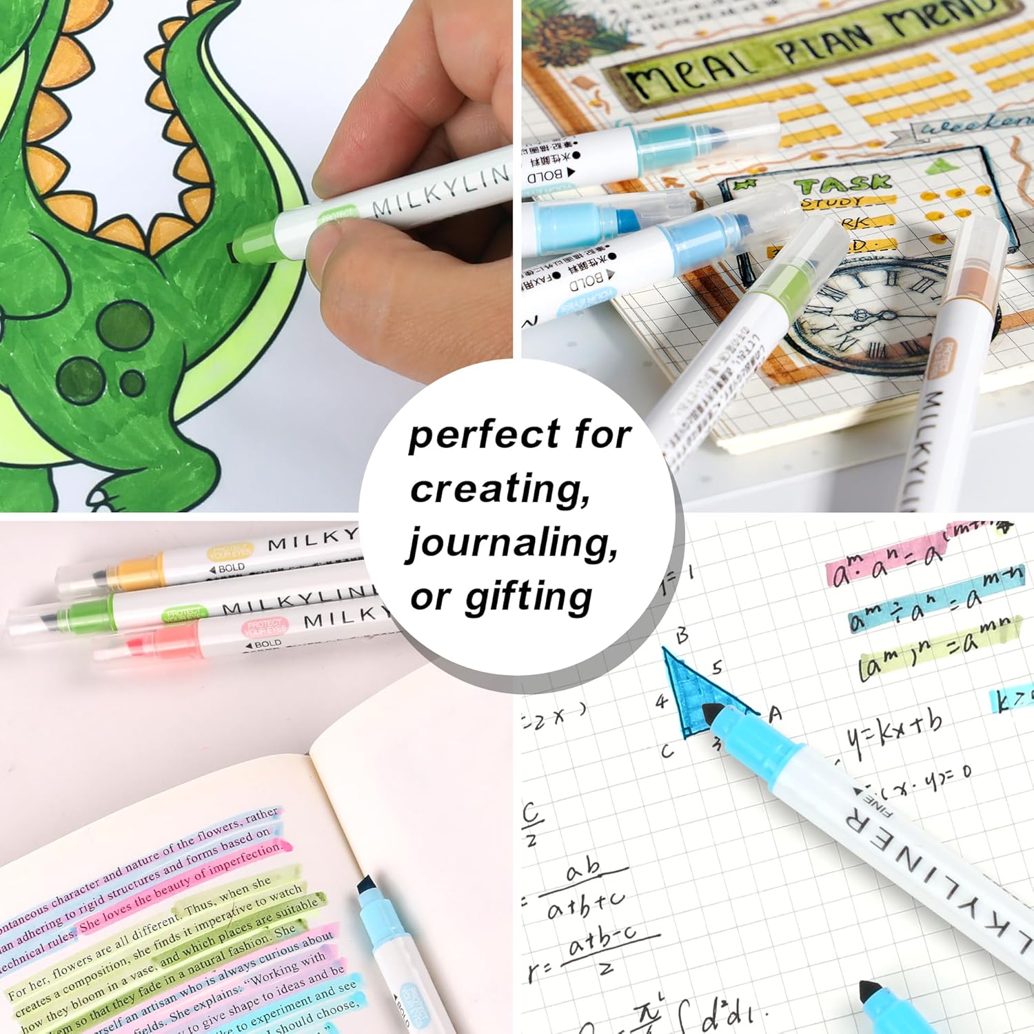 Aesthetic Highlighters Assorted Colors 12 Pack Dual Tip Highlighter Markers No Bleed Perfect for Bible and Bullet Journaling