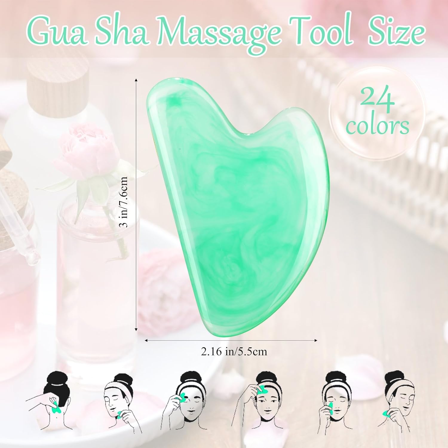 Sherr 24 Pcs Gua Sha Facial Tool Resin Gua Sha Massage Tool Heart Shaped Gua Sha Stone Guasha Board for Face Body Skin Massage Spa Acupuncture Prevent Wrinkles (Mixed Colors)