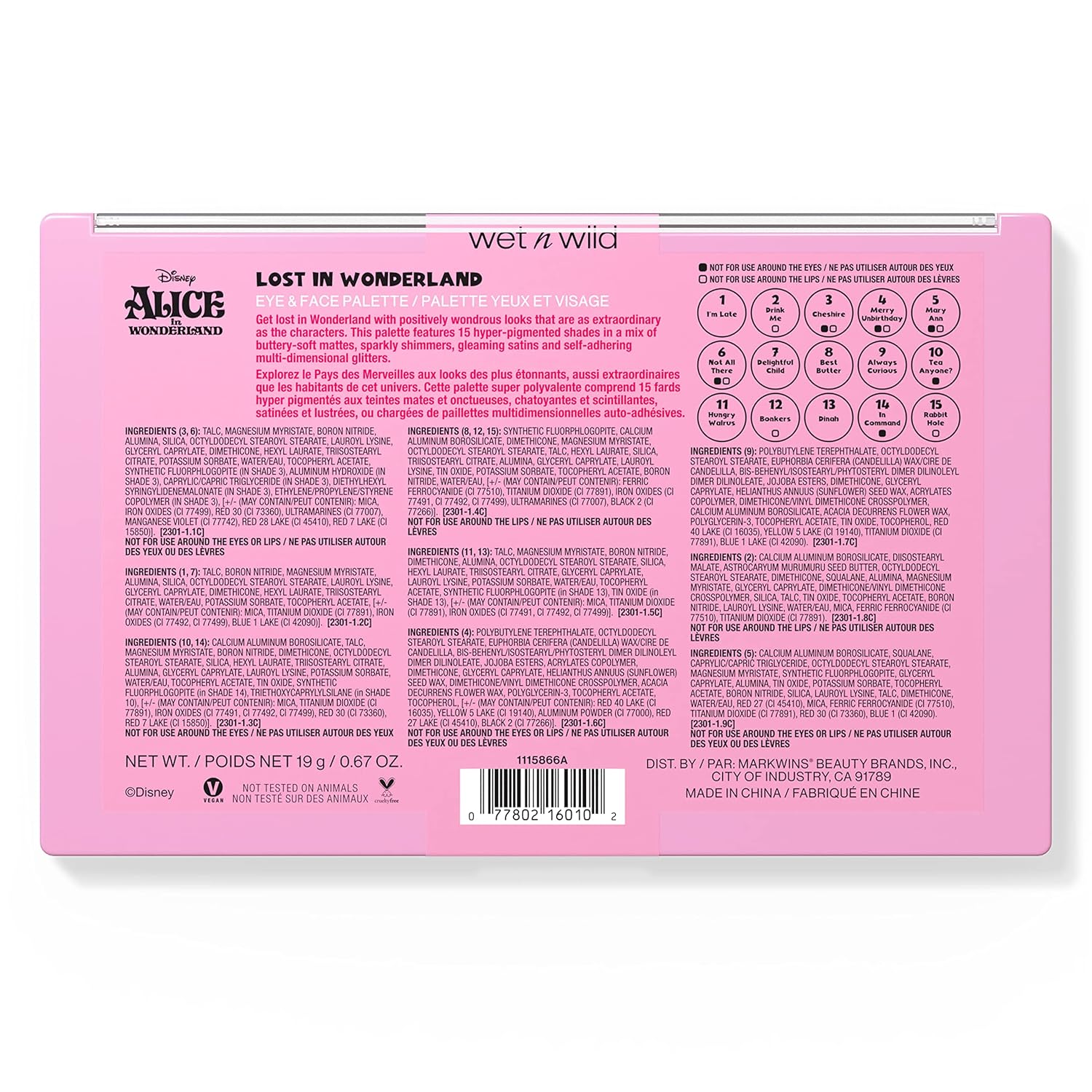 - Alice in Wonderland Collection: Go down the rabbit hole and discover a world of color and fun. This exclusive wet n wild makeup collection features incredible makeup products, accessories, and tools that only get curiouser and curiouser.