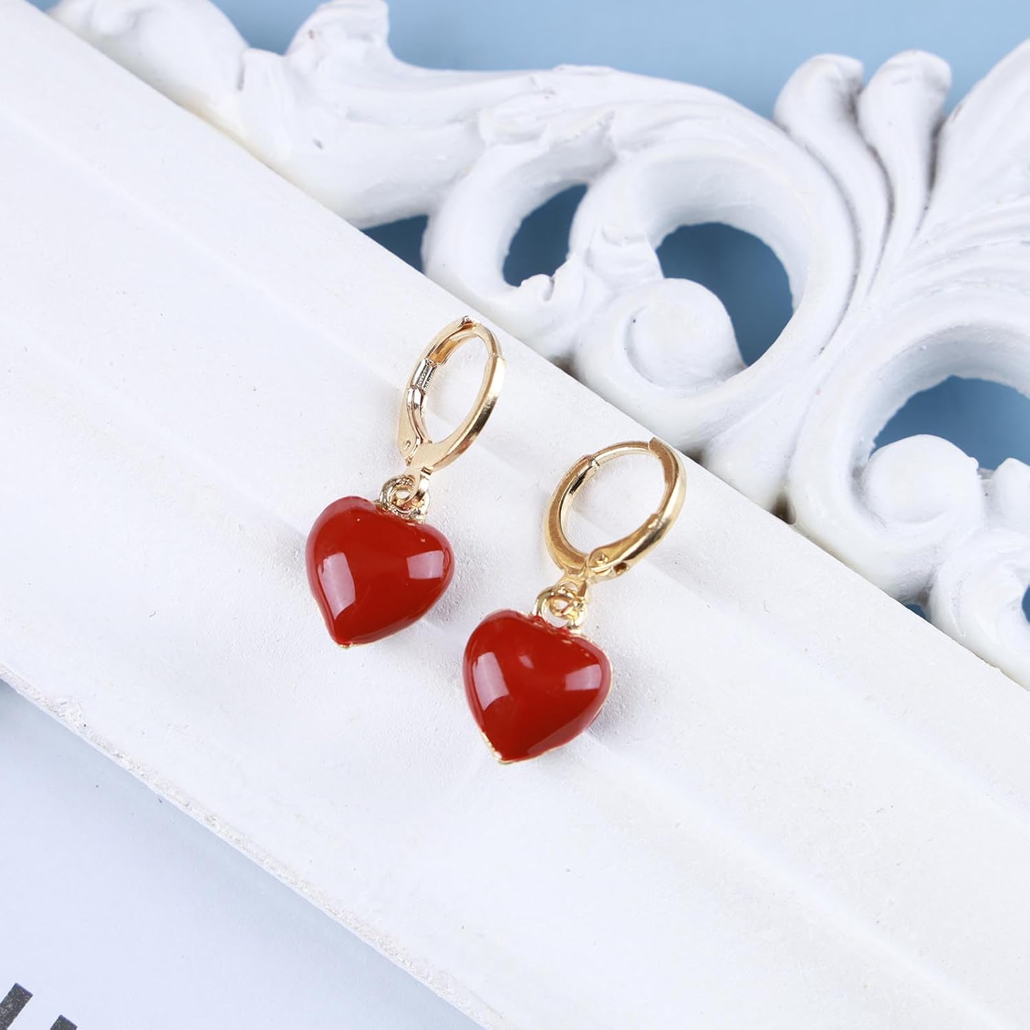 Vintage Heart Dangle earrings Red Coral Earrings Red Heart Love Huggie Earrings Gold Hoop Huggie Earrings Jewelry for Women