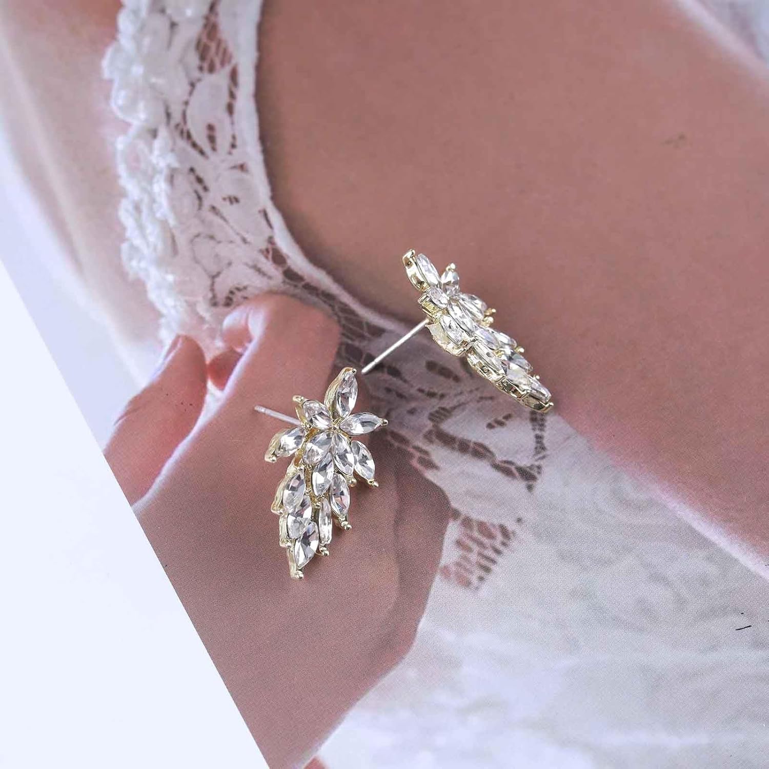 Vintage Crystal Leaf Earrings Leaf Cluster Cz Earrings Gold Rhinestone Leaf Drop Earrings Sparkly Cz Wedding Stud Earrings Jewelry for Women