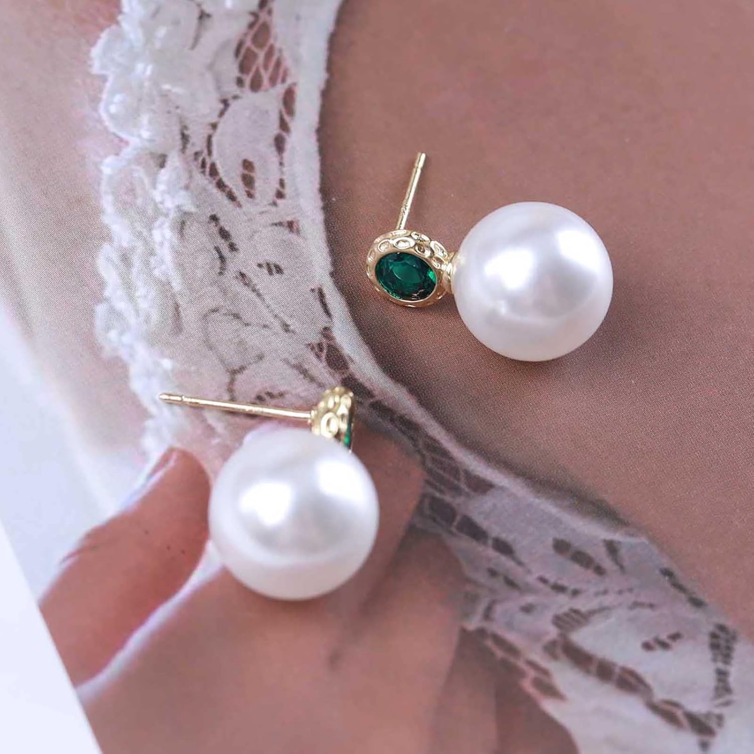 Vintage Emerald Pearl Earrings Gold Pearl Drop Earrings Green Emerald Studs Earrings Rhinestone Pearl Emerald Earrings Jewelry for Women