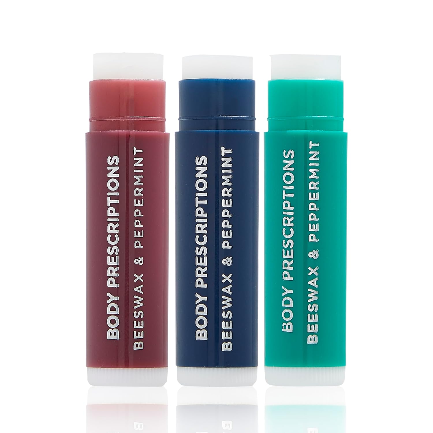 Body Prescriptions Lip Balm Trio for Men - Beeswax and Peppermint | Christmas Stocking Present Set | Nourishing and Moisturizing Formula | Protect and Hydrate Dry Lips | Great Holiday Present for Him