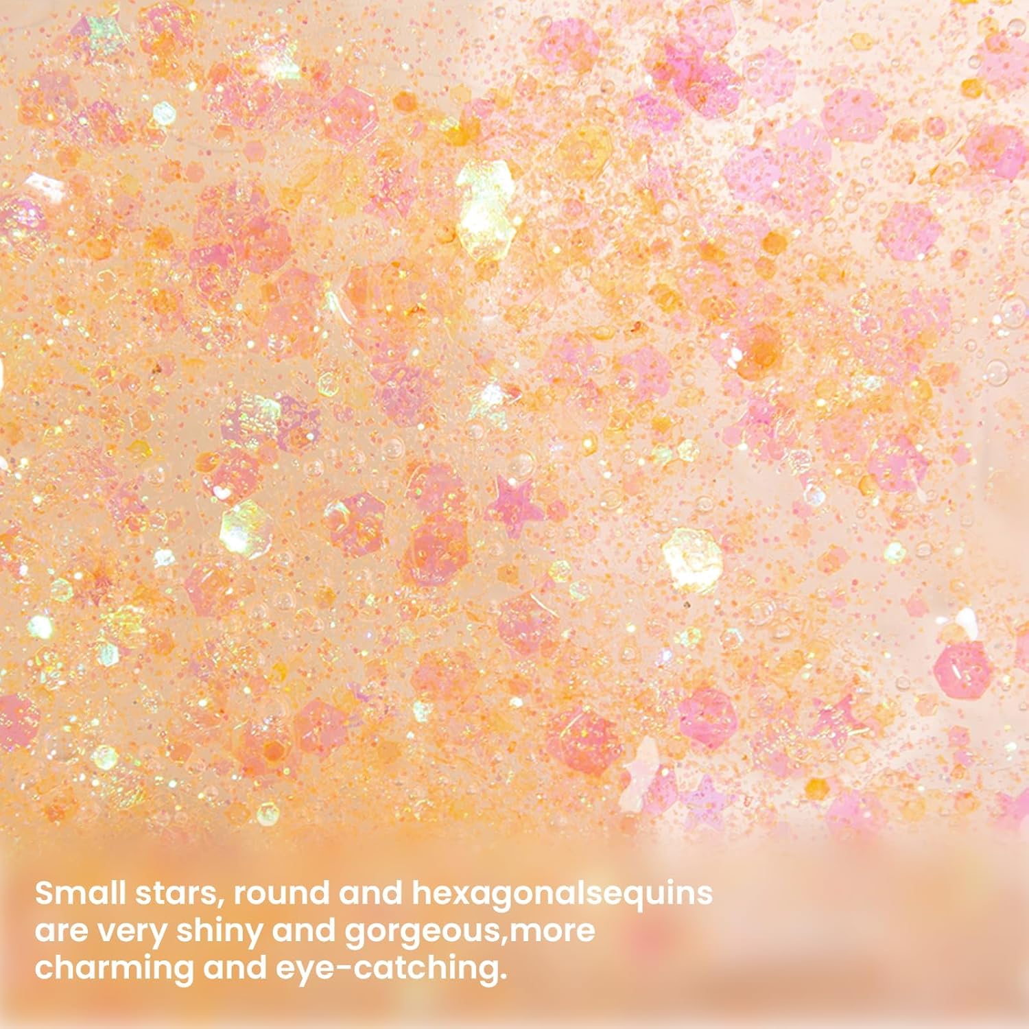 - 【Glitter Gel】This is a body and face sequin with gel. The gel can be more convenient for you to put on makeup, and it is not easy to fall off.There are small stars, small moons and hexagonal sequins, which are very shiny and gorgeous, making your makeup more attractive and eye-catching.