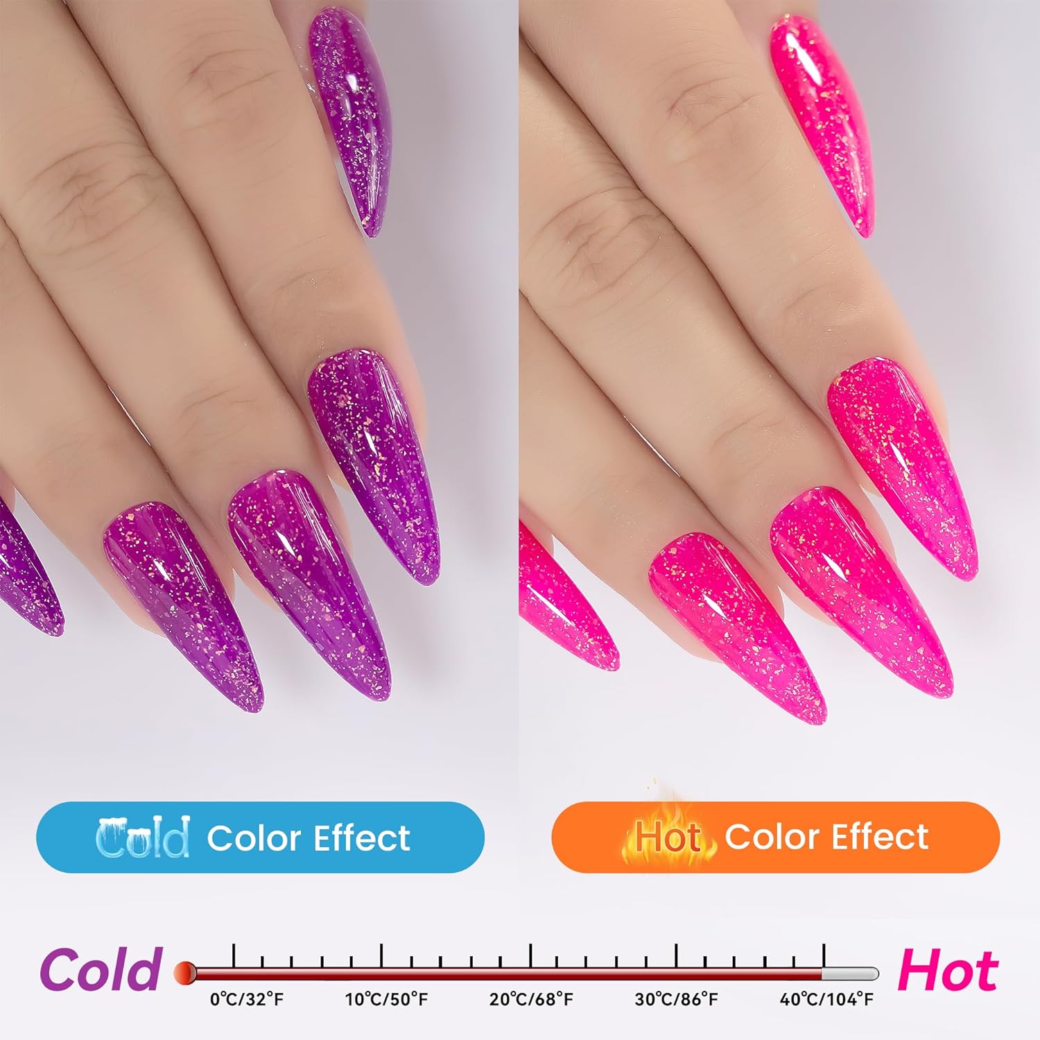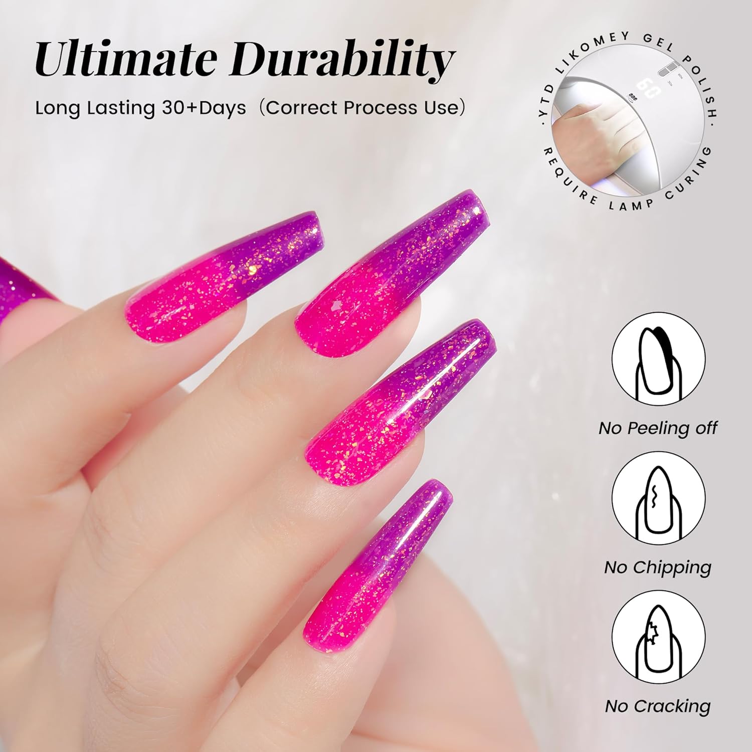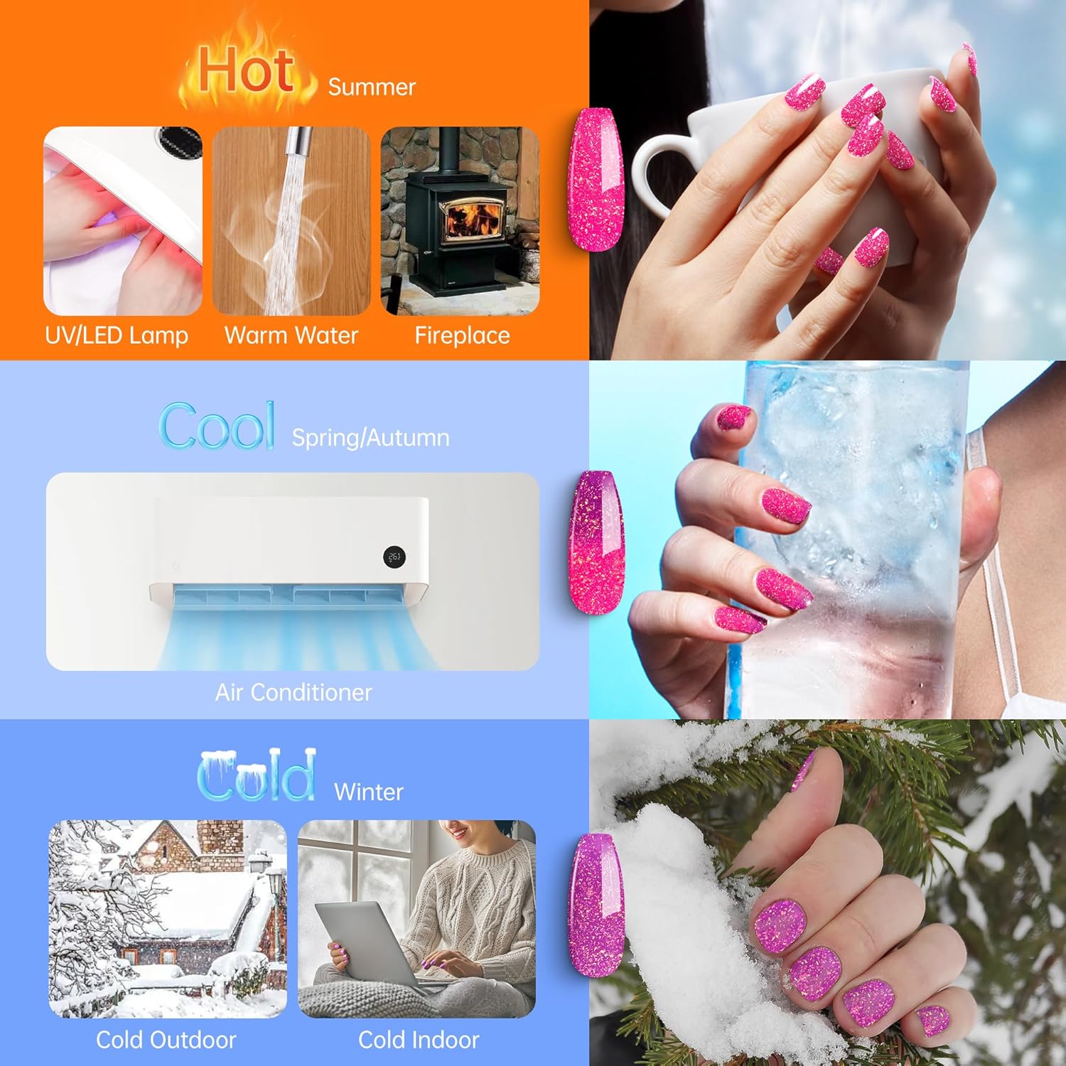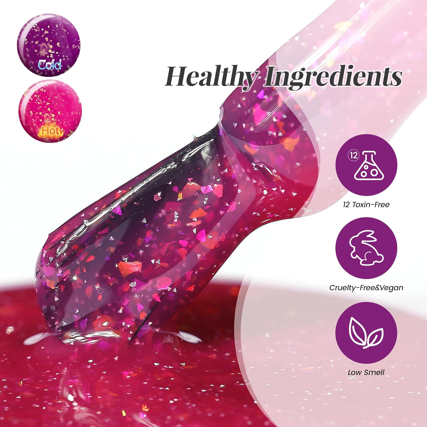 YTD Likomey Brocade Glitter Color Changing Gel Nail Polish,15ml Hot Pink To Violet Shimmer Glitter Mood Temperature Change Colors Iridescent Flakes,Fall Winter Thermal Ombre UV Nail Gel,WB351