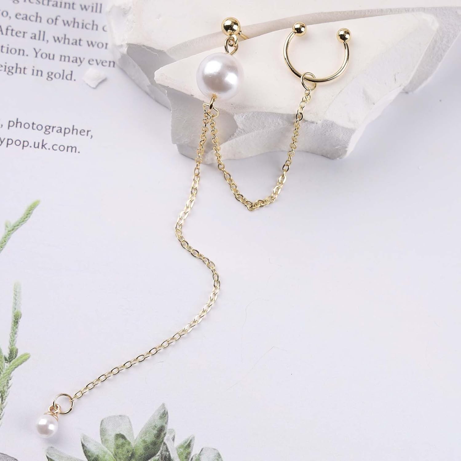 Vintage Long Pearl Drop Earrings Pearl Ear Cuff Chain Earrings Gold Long Tassel Pearl Earrings Pearl Wrap Crawler Earrings Jewelry for Women