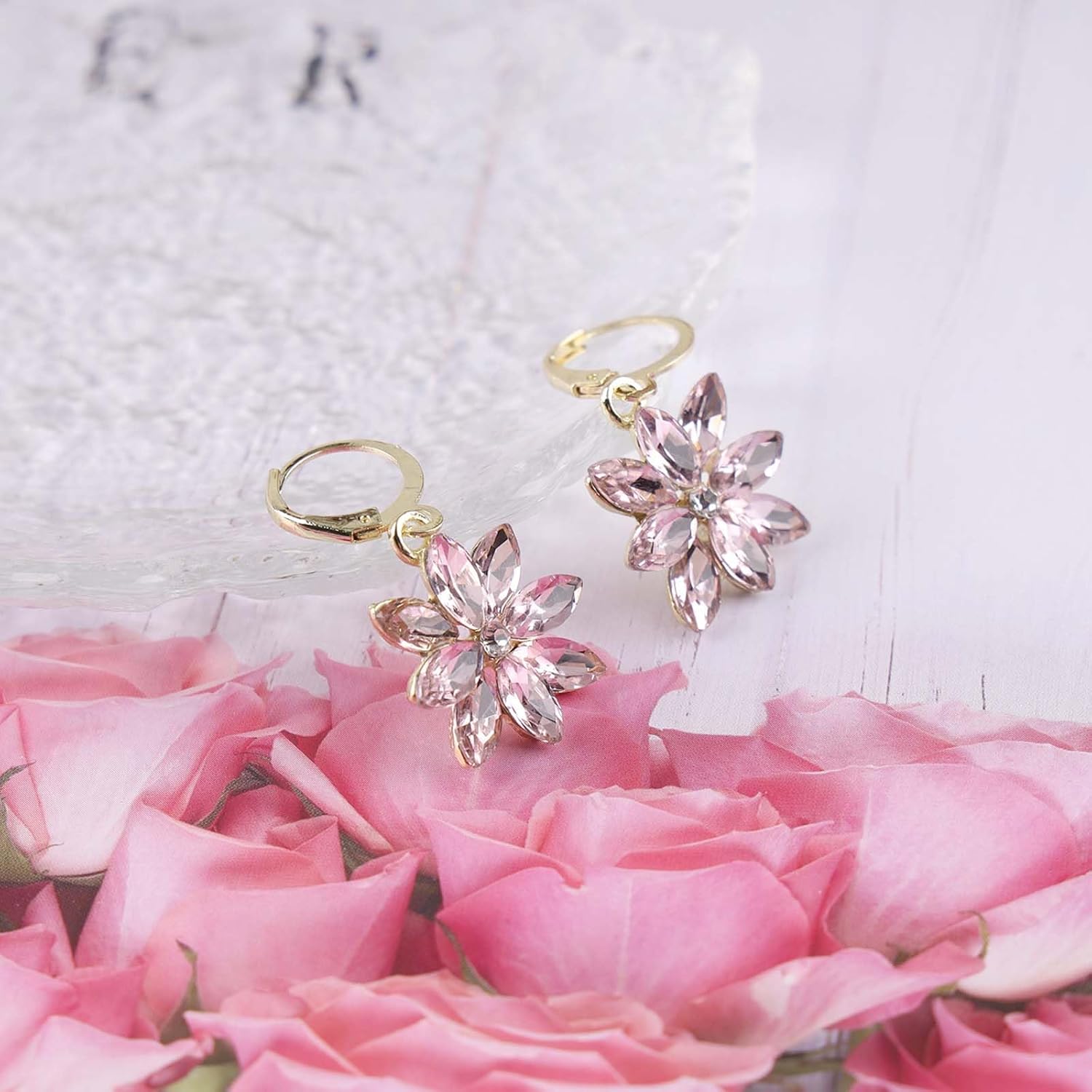 - Crystal flower drop earrings.Item Details:Handmade Item.Size:As Shown.Color:Pink.Materials:Quality Alloy/Crystal.Location:Ear.Style:Boho/Vintage.