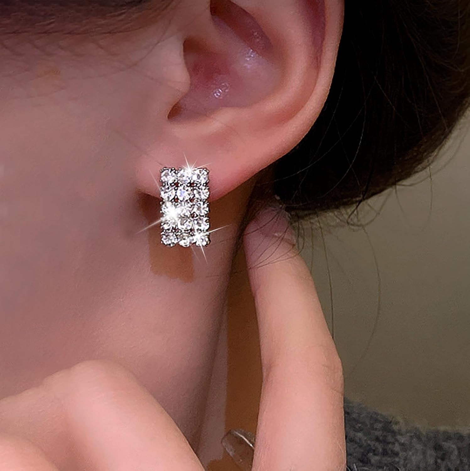 - Square rhinestone stud earrings.Item design:Diversify Collocation.Used to Groom Your the Ear for a More Layered Look , It is Wonderful Everyday Jewelry